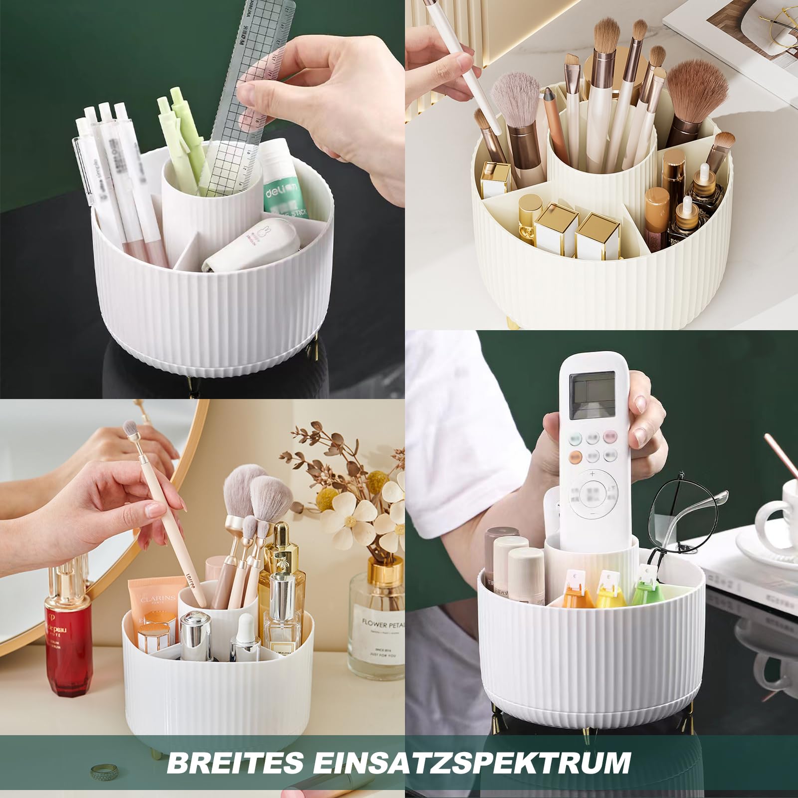 Drehbarer Kosmetik-Organizer - nutzen Sie den Sortierkasten zur effektvollen Präsentation und platzsparenden Aufbewahrung Ihrer Kosmetikartikel Egal ob zu Hause oder im Ladengeschäft: Hier finden Sie Platz für Ihre schönsten Schminkartikel und Pflegeprodukte. In die seitlich angebrachten Ablagefächer des Regals stellen Sie Ihre Handcreme Tuben, Rouge und Puderdosen, Parfümflaschen und Schminkspiegel. Mit dem schicken drehbaren Kosmetik Organizer von Grinscard haben wir genau das Richtige für Ihre Bedürfnisse. Egal ob zu Hause oder im Ladengeschäft SEGERÖN Barhocker/außen, drehbar weiß/beige - Deutschland Schauen Sie sich einfach mal auf Amazon um. Lieferumfang: 1 x Kosmetikständer BITTE BEACHTEN: Die abgebildeten Kosmetikartikel sind NICHT im Lieferumfang enthalten! In die Steckfächer auf der Oberseite des Organizers stecken Sie Ihre Schminkpinsel, Lippenstifte, Nagellack Fläschchen, Pinzetten und Wimpernzangen. 32 x 27 x 27 cm passt das modische Kosmetikdisplay bestimmt auch in Ihr Badezimmer oder Schlafzimmer. Dank der Gumminoppen, die unter dem drehbaren Standfuß angebracht sind, ist die Schminkbox rutschfest und kippsicher. ake-up Aufbewahrung: Unsere Top 7 Epfehlungen für dich | COSOPOLITAN Anwendungsbereiche: Make-up & Beauty Sie möchten Ihre schmucken Kosmetikartikel platzsparend aufbewahren und effektvoll präsentieren? Mit dem schicken drehbaren Kosmetik Organizer von Grinscard haben wir genau das Richtige für Ihre Bedürfnisse. Ihre Freunde oder Kunden werden begeistert sein von der kostbaren Vielfalt, die sich ihren Augen bietet, wenn Sie den Ständer um 360 Grad drehen. Auxmir Make Up Kosmetik Organizer, 360 Drehbar Homdox 360 Grad Drehbare Multifunktionale Kosmetik Ständer Beauty Drehschrank Schicker Ständer für Ihre Make-up Schätze - auf Amazon finden Sie auch Kosmetikkästen und andere Systeme zur Kosmetikaufbewahrung von Grinscard