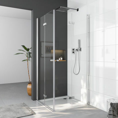 90x75 Duschkabine Drehfalttür 75x90 Falttür Eckeinstieg Drehfalttür 180° Dusche Duschabtrennung 6mm NANO Glas Höhe 195cm