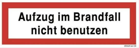 Das Brandschutzschild mit der Aufschrift - Aufzug im Brandfall nicht benutzen - weist Personen, Feuerwehr und Rettungskräfte auf die Nichtbenutzung von Fahrstühlen im Brandfall hin. Für den langfristigen Außeneinsatz empfehlen wir auf jeden Fall die Aluverbundplatte für das Feuerwehrschild Aufzug im Brandfall nicht benutzen zu wählen. Das sehr stabile Grundmaterial ist extrem langlebig und bruchfest und so perfekt für den Außenbereich Brandschutzschild: Aufzug im Brandfall nicht benutzen Aluminium 7,4 x 21 cmAufzug im Brandfall nicht benutzen zur BrandschutzbeschilderungAluminiumStück493A74 Verbotsschild - Aufzug im Brandfall nicht benutzen Temperaturbeständig und resistent gegen Chemikalien. Aufzug Im Brandfall Verboten Dreifke® Schild Aufzug Im Brandfall Nicht Benutzen Gemäß VDI 6017 Alu 52x148mm Wetterfest | Beschriftung Für Aufzüge | Hinweisschilder & Piktogramme | Schilder & Etiketten Aufzugschilder Im Brandfall Nicht Benutzen Farbe: rot, weiß und schwarz Material: selbstklebende Folie Temperaturbeständig von -40 bis +80 °C Maße: 21 x 7,4 cm Kontrast- und signalstark Resistent gegen Chemikalien Für sichere und vorschriftsgemäße Kennzeichnung Geeignet für Innen- und Außenbereich Problemlose und schnelle Anbringung ohne lästiges Bohren Gemäß DIN 4066 Mehr zu diesem Produkt: Je Bestelleinheit erhalten Sie zwei Stück der wichtigen Hinweisschilder.