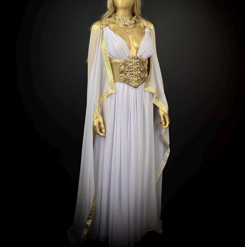 Gehen Sie stolz als Olympia durch den Karneval. Ein göttlicher Kopfschmuck rundet das Kostüm für die Faschingszeit gekonnt ab. Eine wundervolle Kombination aus einem langen Kleid und tollen Accessoires bietet Ihnen dieses Damenkostüm. Das Kleid verleiht Ihnen einen luftigen Anschein. Das Kleid hat an den Schultern zwei besondere Kreisteile, an die lange, goldfarbene Flügelärmel angenäht sind, sowie wundervolle, glänzende Armmanschetten. Langes, edles Kleid // Pailletten-Verzierungen am Kragen und Brustbereich in Goldfarben // Lange, goldfarbene Flügelärmel Das Frauenkostüm griechische Göttin Olympia besteht aus einem sehr edlen, langen Kleid mit Pailletten-Verzierungen am Kragen und am Brustbereich in Goldfarben. Beschreibung Das Frauenkostüm olympische Göttin Aphrodite besteht aus einem langen, verführerischen Kleid mit einer aufgenähten, roten samtartigen Schärpe, einer Bordüre am Hals und am Saum sowie einem goldenen Armband mit Pailletten, Material: 100 % Polyester Göttin Kostüm Damen Dressforfun Griechische Göttin Olympia - Kaufen Bei Kleopatra Kostüm Damen Das Kleid hat tolle Ärmel, die wie ein zauberhafter Umhang aussehen und mit Armmanschetten verbunden sind. Shoppen Sie die neueste Kleider, Tops, Unterseite von Frauenart. Elenzga Große Größen Damen einfarbiges V-Ausschnitt figurbetontes langärmliges asymmetrisches Multi Wrap Dress – Wickelkleid – Brautjungfern Kleid Salbei – Mein...