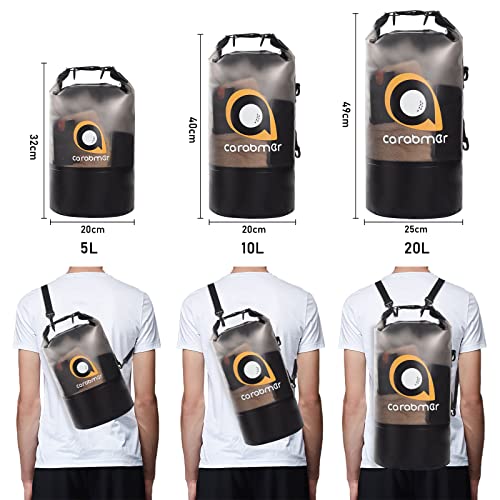 Wenn der Trockensack aufgeblasen ist, kann Luft nicht aus dem Trockensack austreten, was bedeutet, dass Wasser auch nicht hineinlaufen kann Unigear Dry Bag, 2L/5L/10L/20L/30L/40L, Waterproof Bag Backpack Die wasserdichte Handy-Tasche ist aus hochwertigem ABS + PVC mit verstärktem Eingang hergestellt. Starke Schultergurte: Der wasserdichte Rucksack von OMGear ist mit starken, verstellbaren Schultergurten ausgestattet, ermöglicht bequemes Tragen und passt für die meisten Körpergrößen. Der Dry Bag ist aufgrund seiner glatten Oberfläche leicht abwaschbar Ein Muss für die meisten Outdoor-Aktivitäten: Der trockene Rucksack kann nach dem Rollen und Schnallen auf dem Wasser schwimmen, perfekt für alle Outdoor-Aktivitäten, wie Tauchen, Kajakfahren, Bootfahren, Paddelbrett, Segeln, Kanufahren, Surfen, Angeln, Rafting, Wandern, Camping, Strandaktivitäten usw Important information: This combination of waterproof bag & waterproof mobile phone case is good for boating, hiking, canoeing, kayaking, fishing, skiing and snowboarding, etc. Multifunctional OMGear Waterproof Dry Bag Backpack Waterproof Phone Pouch Für 30 Liter und 40 Liter wasserdichte Rucksäcke stellen wir die Gurte aus strapazierfähigem EVA her, weich und langlebiger für starke Beanspruchung Best For: Water sports enthusiasts and outdoor adventurers who need a versatile waterproof storage solution that combines a dry backpack, waist pouch, and phone case for activities like kayaking, boating, fishing, and camping