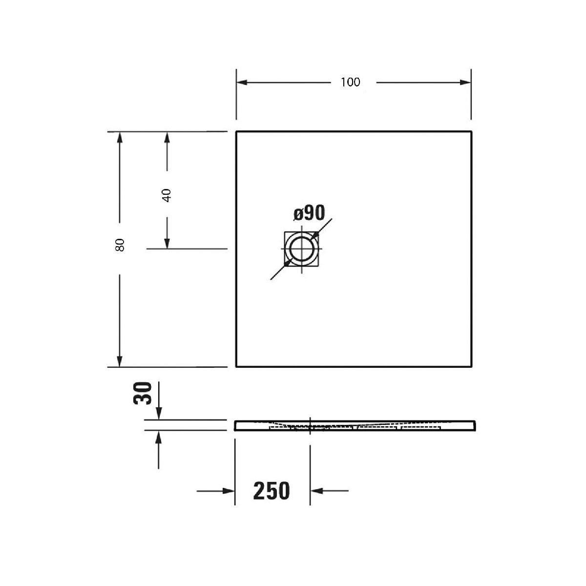 Duarvit Sustano Rechteck-Duschwanne 720273650000000 100 X 80 X 3 Cm Dunkelgrau Matt