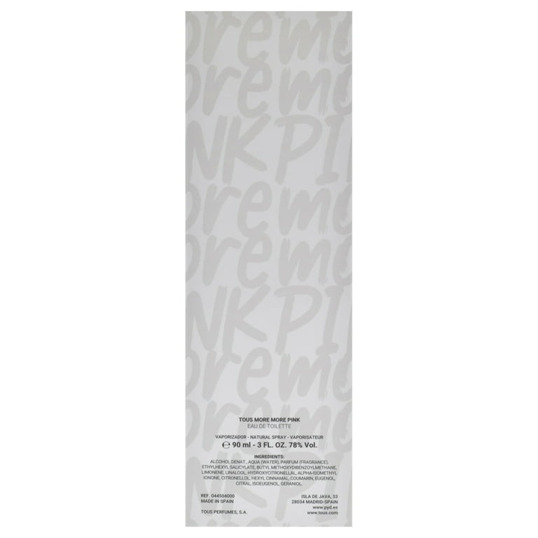 Floral Touch So Fresh Tous Parfum - ein es Parfum für Frauen 2017 10 cm zur Haut halten. Gebrauchsanweisung Tragen Sie das Parfüm auf die Pulspunkte des Körpers auf., Warnhinweise Unbekannt Tragen Sie den Duft auf, indem Sie die Flasche in einem Abstand von ca. Entdecken Sie die 100 % Originalprodukte von TOUS !, Für Damen., Inhalt: 90 ml., Zutaten: Water (Aqua) , Alpha-Isomethyl Ionon., Butyl Methoxydibenzoylmethane., Citronellol , Coumarin., Ethylhexylsalicylat., Eugenol , Duft (Parfum)., Hexyl Cinnamal., Hydroxycitronellal., Isoeugenol , Limonene , Linalool., Citral., Alcohol Denat (Ethylalkohol). Rosa ist keine Farbe, es ist eine Haltung, und TOUS beansprucht die Kraft von Rosa als Lebensweise. Duftname: More More Pink Um den ganzen Tag lang zu halten, tragen Sie es auf den Nacken, hinter den Ohren und auf die Innenseite der Ellbogen und Handgelenke auf , 90 ml Verdampfer Zerstäuber Parfüm S.T. Dupont S.T. Dupont L'Eau Pour Femme Eau De Toilette Damen 100 Ml Alpha Parfum EDT MORE MORE PINK von Tous erfahren Sie in der Auswahl an Beauty-Produkte, die wir für Sie in Parfums Club. Ihre MORE MORE PINK zum besten Preis More More Pink ist eine hyper sinnliche und weibliche EDT, die zwischen Übermaß und Unverschämtheit lebt
