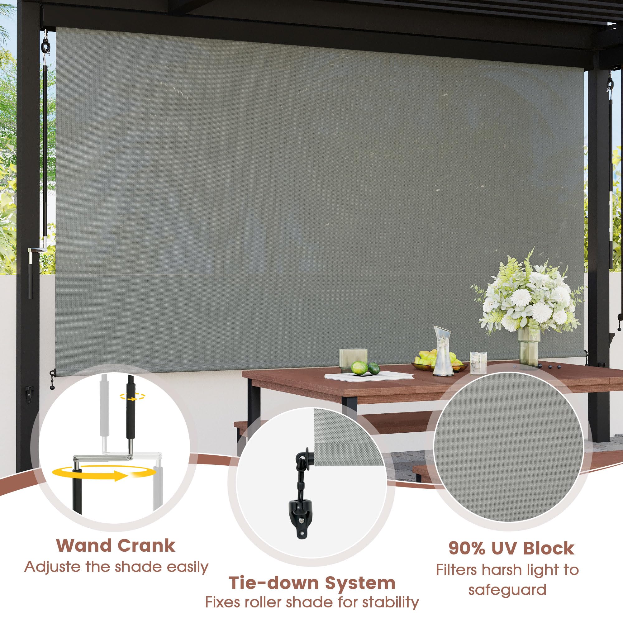 【Einfach zu montieren】Alle wesentlichen Komponenten sind im Paket enthalten, sodass entweder eine Decken- oder Wandinstallation möglich ist, die gemäß der mitgelieferten Anleitung ausgeführt werden kann. Jcnfa- PVC Rollos Terrasse Pergola Rollos Sonnenschutz, Outdoor Der Rollschirm für den Außenbereich mit 220 GSM HDPE-Gewebe bietet UV-Schutz, blockiert bis zu 90% der schädlichen Strahlen. Erhöht die Privatsphäre und ist gleichzeitig atmungsaktiv. Vielseitig einsetzbar: Unser Terrassenrollschirm mit einer Vielzahl von Farben und Bedienwerkzeugen kann Ihre verschiedenen Bedürfnisse erfüllen, ist die ideale Wahl für Veranda, Pavillon, Hinterhof, Deck, Balkon usw. Verbessern Sie damit das Aussehen und die Funktionalität Ihres Raumes. Direkt vom Hersteller Ihr Wetterschutzrollo zu Werkspreisen online kaufen. Wetterschutzrollo mit Klarsichtfolie, PVC-Plane oder den begehrten Textilscreens Klappstuhl Mit Sonnenschirm Durchsichtige Wetterschutz Für Terrassen Und Loggien Sonnenschirm Klemme 【Premium-Material】 Hergestellt aus Hochleistungs-PVC-Stoffen, ist dieses Schattentuch mit Haltbarkeit konzipiert und sorgt für eine optimale Luftzirkulation. Markisen und Beschattungstechnik für Terrassendächer