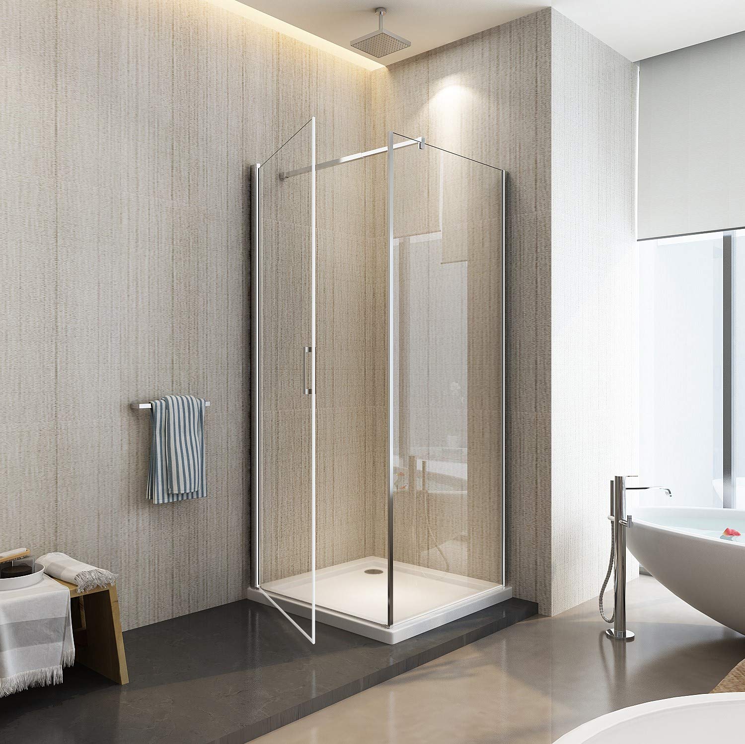 Badewannen-Anschluss als Glasdusche Einfach zu installieren und zu reinigen – der Badezimmer-Duschglastür ist einfach zu installieren, folgen Sie einfach dem Installationsprozess in der Anleitung. Ein Muss für das Badezimmer – die Glastür für das Badezimmer trennt sich geschickt in trockene und nasse Bereiche, wodurch sie ordentlich und ordentlich aussieht. Brandneue Hardware und Oberfläche – gebürsteter goldener Rahmen und Wandprofil aus gebürstetem Edelstahl, unterstützt die Duschglastür, mit anderem kleinen Zubehör, wie U-Kanal und obere Klemmen. Gerahmte Duschglastür – Die vollgerahmte Duschglastür ist für eine Breite von 86,4 cm und eine Höhe von 188 cm ausgelegt, gebürstetes Gold, perfekt für die Schaffung eines geräumigen, entspannenden Duschplatzes. Moderner, einfacher und edel aussehender Stil, passt perfekt zu Ihrer Badezimmerdekoration., Modisch und funktional. Die einzelne Duschglasscheibe kann reversibel installiert werden, sodass sie als links- oder rechtsbefestigung verwendet werden kann. duschspa Dusch-Drehtür »185cm Glastür Duschtür Nischentür Drehtür Duschabtrennung Duschtüren Aus Echtglas Xilewying Feste Vollgerahmte Badezimmer-Dusch-Glastür, 34"*74" Einzel-Dusch- Glas-Bildschirm, 5/16 "(8 Mm) Klares Gehärtetes Glas Duschtür Für Begehbare Dusche, Gebürstetes Gold Duschtüren Glas Duschtüren aus Glas lassen Ihr Badezimmer größer wirken und verleihen Ihrer Duschkabine ein stilvolles Aussehen. Ein wenig mehr Privatsphäre bieten Duschtüren mit Milchglas, die Sie vor Blicken schützen, ohne die Duschkabine abzudunkeln Hochwertige Duschglastür – ANSI-zertifiziertes, klares gehärtetes Glas, 8 mm dick, bietet Sicherheitsschutz während der Dusche.