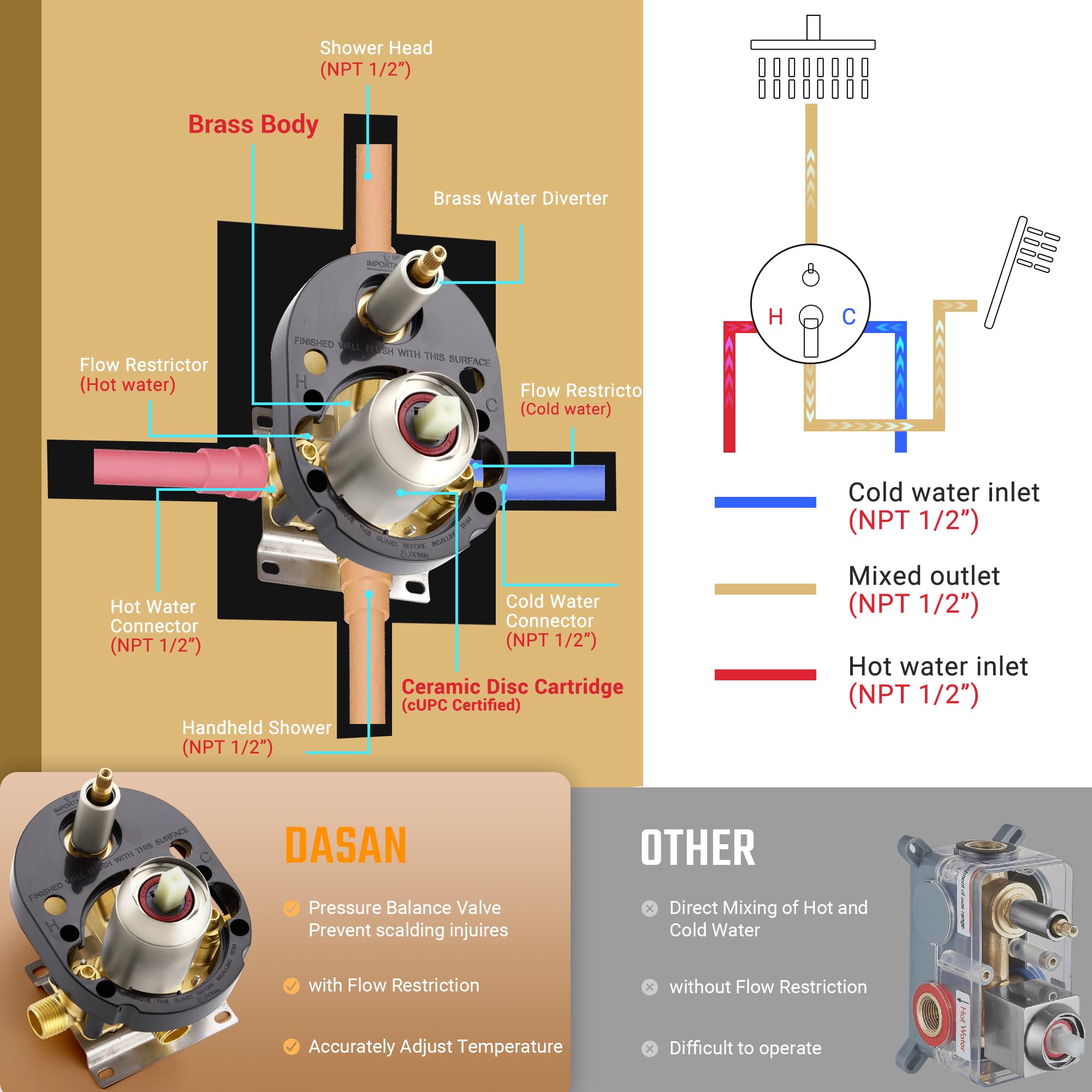 Duschsyste Gebürstet Gold Duscharaturen Set Regendusche It 3-Wege H