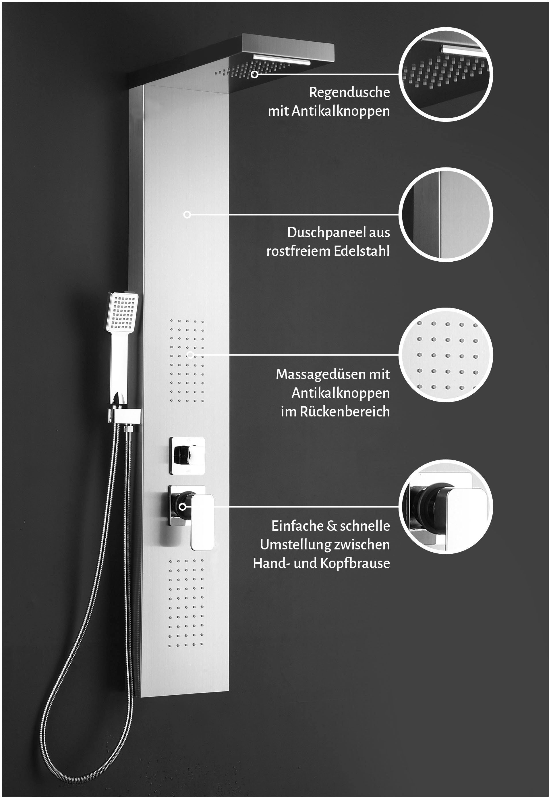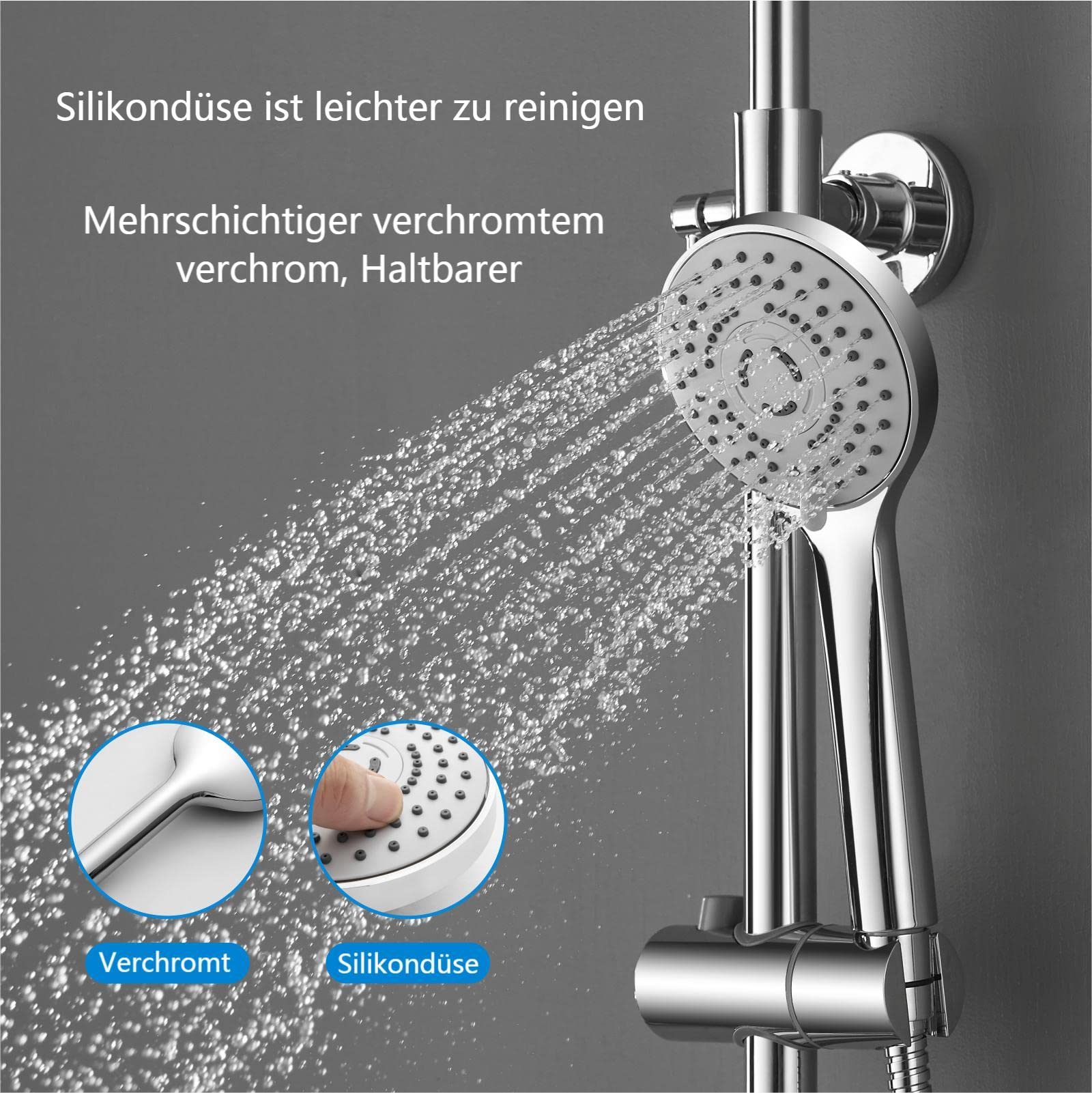 Die Handbrause kann auch um 90° gedreht werden. Der einstellbare Höhenbereich beträgt 85-121 cm. Edelstahl Duschpaneel Duschset Regendusche Kopfbrause Duscharmatur Duschsäule eB Intensive Abdeckung zum Waschen von Wassertropfen, so dass jeder Zentimeter der Haut sauber gewaschen wird. 【Hohe Qualität】 Duschsäule mit Messing Duscharmatur Die Duschstange ist aus hochwertigem Edelstahl gefertigt. Halten Sie einfach die Einstelltaste, um nach oben und unten zu bewegen. Höhenverstellung der Kopfdusche Die Höhe der Duschstange kann vor und nach der Installation frei gedehnt und angepasst werden. Besteht aus einer Edelstahl-Verkleidungsstange von 90 x 35 cm und 22 mm Durchmesser, jetzt ausziehbar von 85 cm auf 121 cm. 【Leicht zu reinigen】Die Oberfläche des Duschsystems ist verchromt, was Oxidation und Korrosion widerstehen kann, und Flecken können mit einem leichten Tuch entfernt werden. Duschsäule Mit Handbrause Und Duschkopf In Quadratischer Form Moderne runde Dusche 100 Düsen sind gleichmäßig verteilt, wodurch die Kontaktfläche zwischen Wasser und Haut gleichmäßiger wird. Wenn incluye el grifo de latón. ECD Germany Duscharmatur Duschsystem Thermostat Mschbattere Duschset... Lassen Sie weiche und fleischige Wassertropfen die Müdigkeit und Probleme des Tages wegwaschen! Hohe Qualität Duschsäule mit Messing Duscharmatur. Drehen, um den Wasserauslassmodus zu ändern Es kann durch Drehen zwischen der oberen Dusche und der Handbrause umgeschaltet werden, was bequem zu bedienen ist. Regendusche Ohne Armatur Antikes Messing Duscharmatur Duschset Duschgarnitur Regendusche Kopf Handbrause 1 1 600x1061 Duscharmatur Komplettset Der obere Teil des Kopfes kann um 360 Grad gedreht werden, breit und gleichmäßig, wodurch die Dusche reibungsloser wird. 【Flexibel und komfortabel】Duschsäule mit Kopfbrause und Handbrause kann zwischen 800-1200 mm eingestellt werden, geeignet für Menschen unterschiedlicher Größe; der Schlauch und die Duschhalterung können Ihre unterschiedlichen Bedürfnisse der Dusche erfüllen. Runde Handbrause Eine runde Handbrause mit dichten Auslasslöchern, die einen luxuriösen Wasserfluss bietet. Wenn Sie irgendwelche Fragen haben, zögern Sie nicht, uns über die offizielle E-Mail-Adresse von YOOZENA oder über Amazon zu kontaktieren, Kundenzufriedenheit ist unser Ziel, wir sind immer für Sie da. Höhenverstellbar Der Duschkopf kann um 360 gedreht werden, um 15 nach oben und unten geneigt werden. Handbrause mit 1,5 m Schlauch, flexibler und bequemer zu bedienen. Höhenverstellung der Handbrause Die Höhe der Handdusche ist verstellbar. Wenn Sie Fragen haben, zögern Sie nicht, uns über die offizielle E-Mail-Adresse von YOOZENA oder über zu kontaktieren, Kundenzufriedenheit ist unser Ziel, wir sind immer für Sie da. Einstellbarer Winkel Der Duschkopf kann um 360° gedreht und um 15° nach oben und unten geneigt werden.