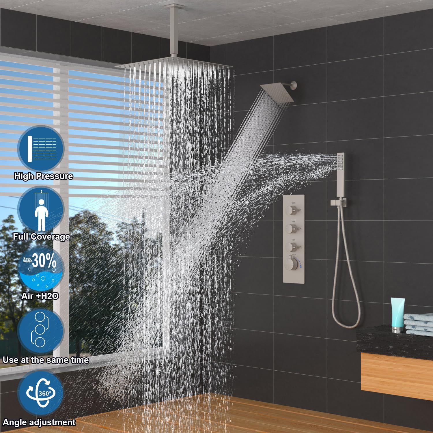 Enga Thermostat-Doppelkopf-Duschsystem, 40,6 X 81,3 Cm Regenfall & 15,2