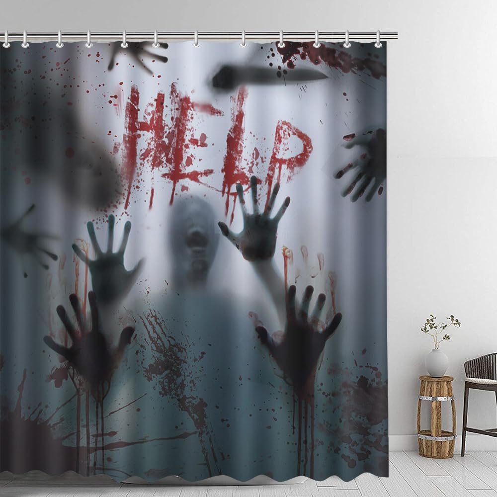 Kaufe Halloween-Duschvorhang, Fenstervorhänge, Horror, Blutige