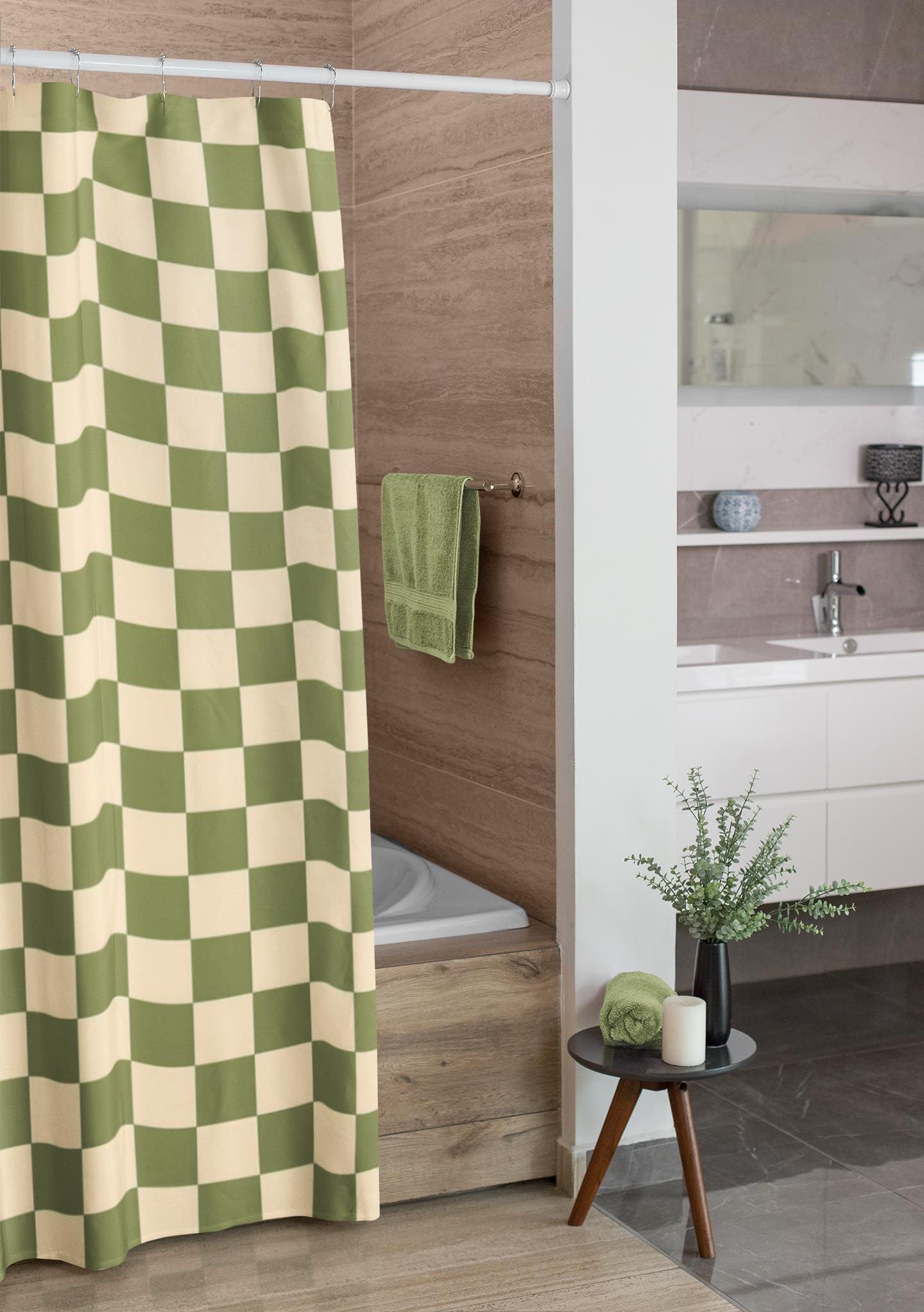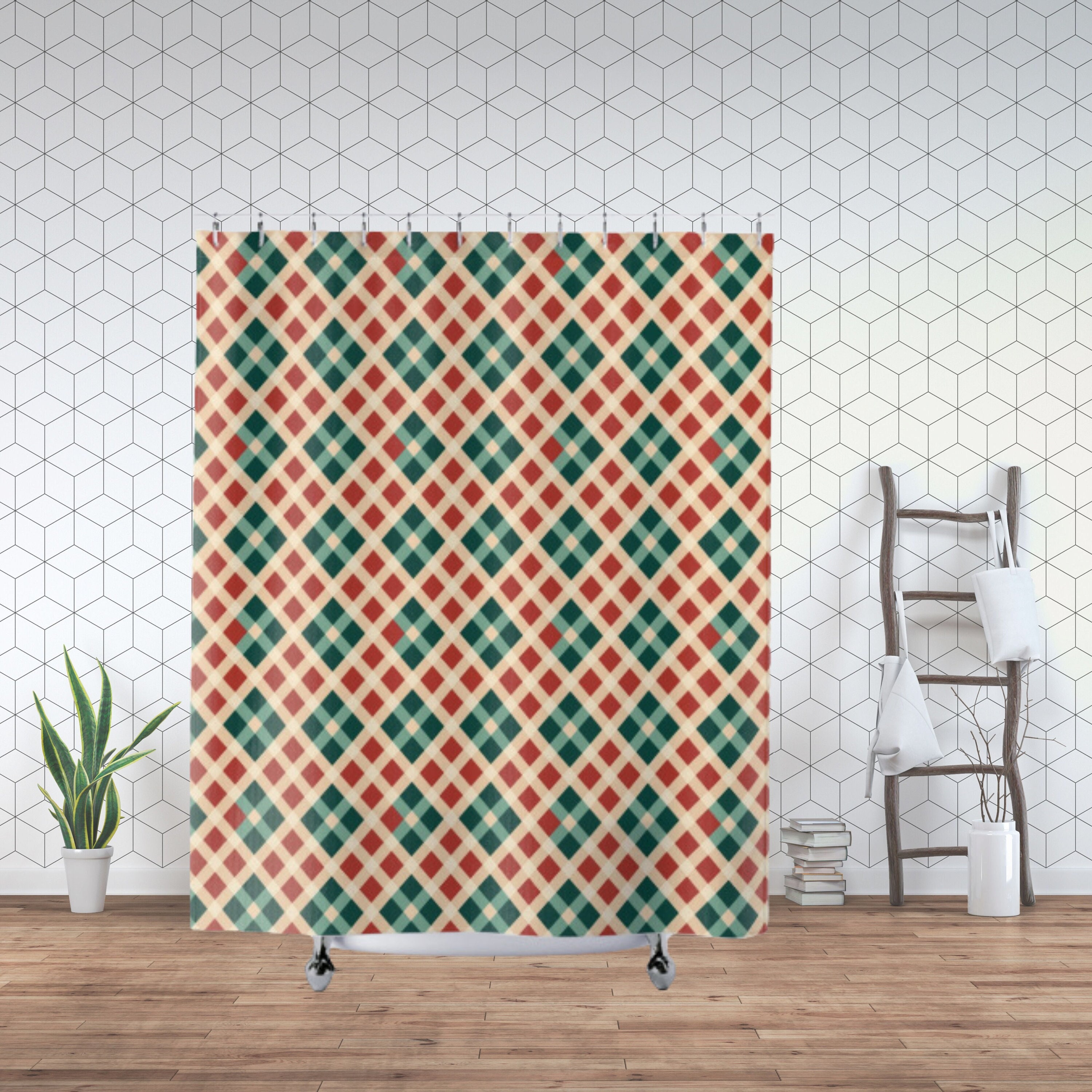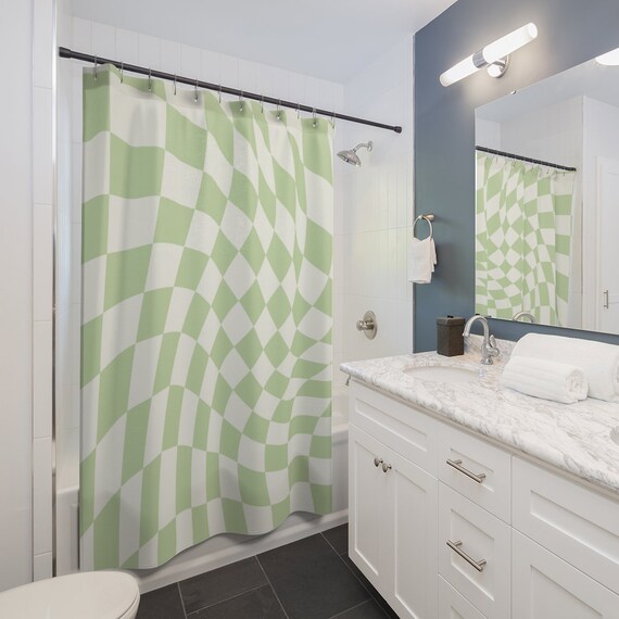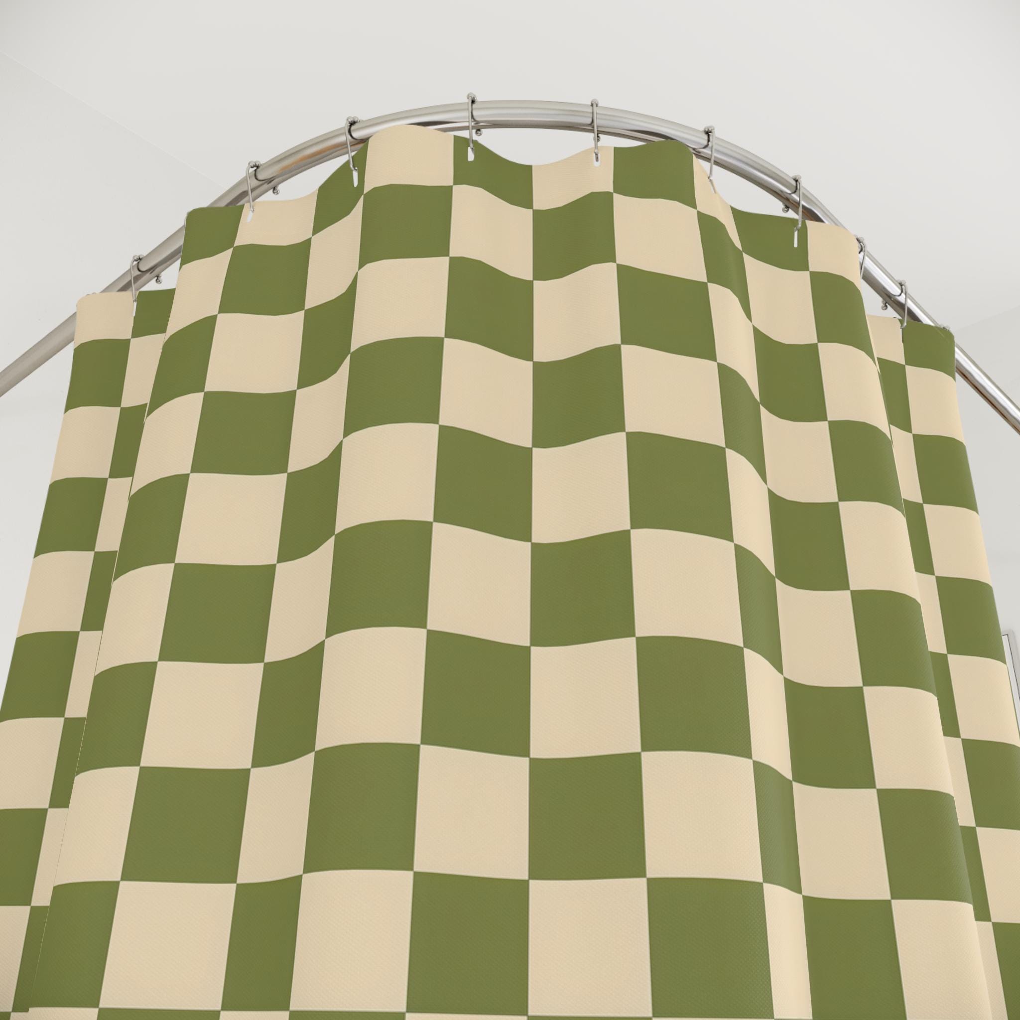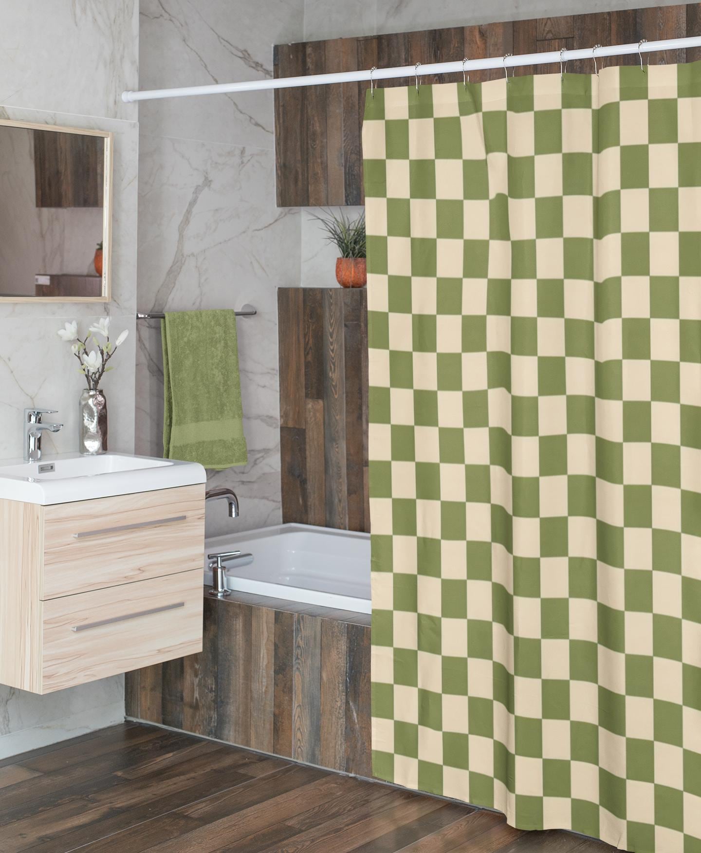 Duschvorhang Grün Kariert Retro Stil Badezimmer Vorhang Ästhetisches Modernes Badezimmer Accessoire 1950er 60er Jahre Badewannenvorhang Abstrakt Geometrisch - Österreich