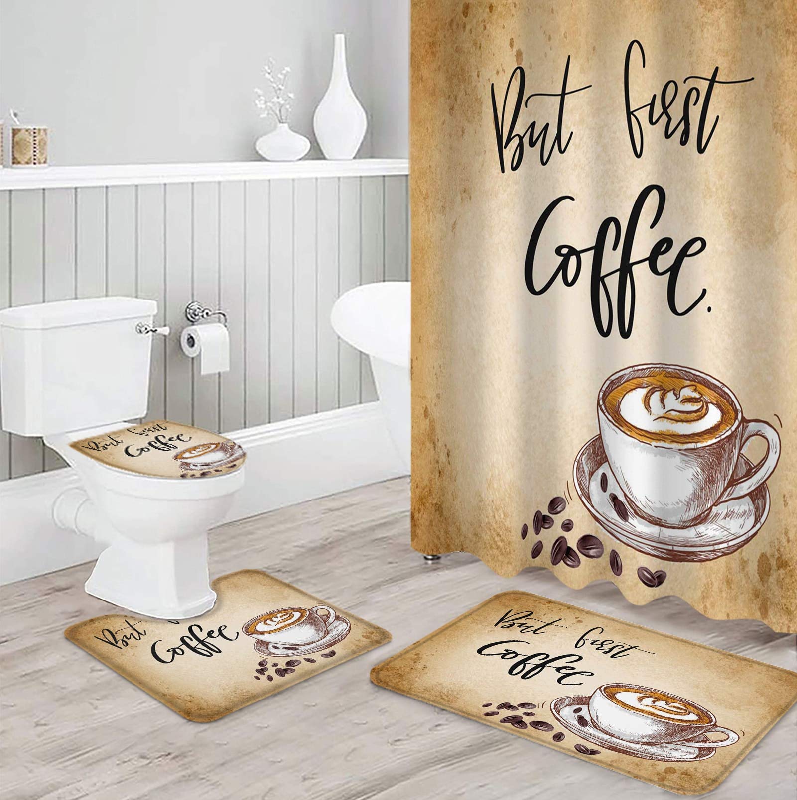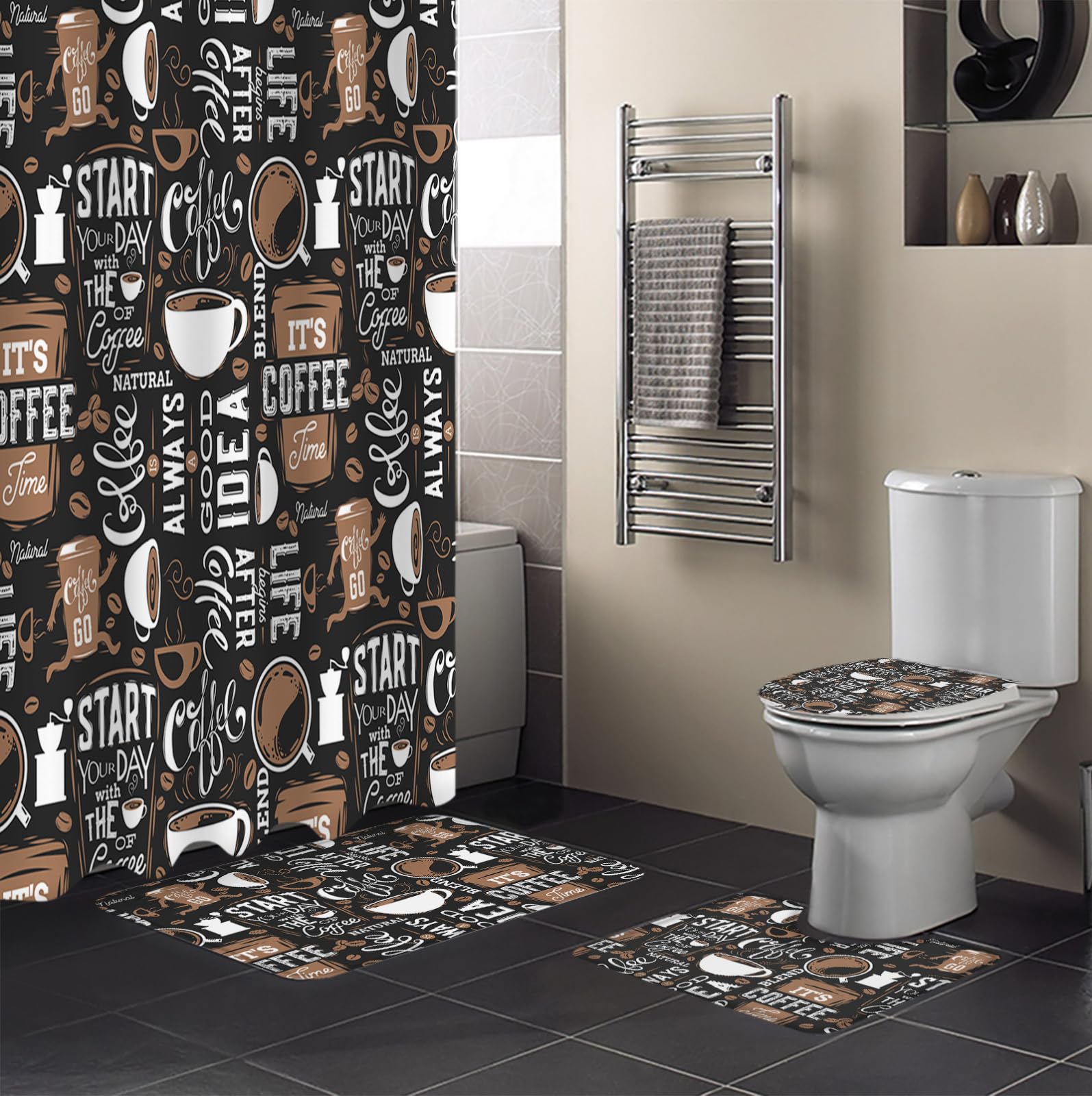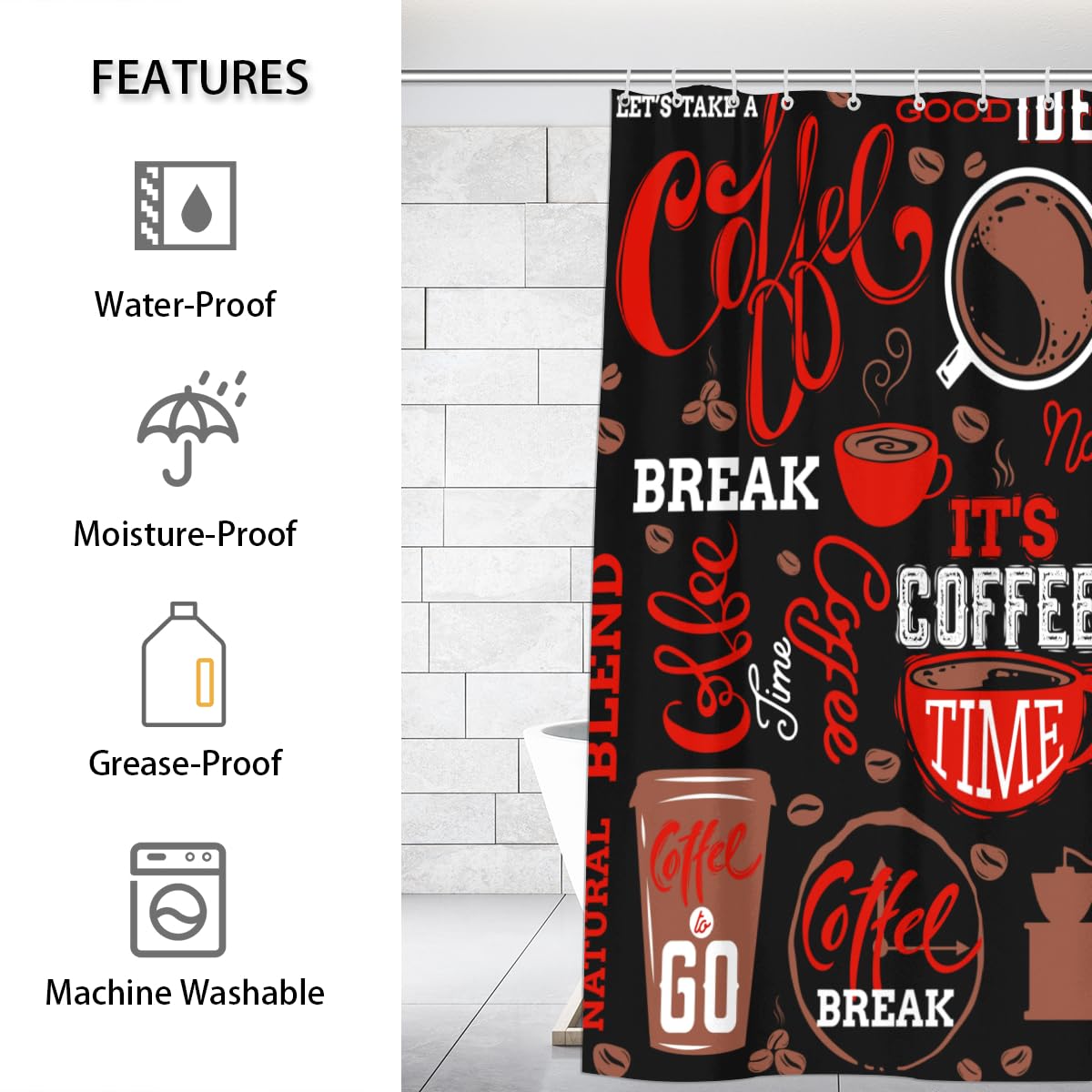 KOBLEN Duschvorhang Mit Kaffee-Muster Für Badezimmer, Duschvorhang-Set Mit 12 Haken, Wasserdichter Stoff, Badvorhang Für Badewanne, Toilette, 168 X 182,9 Cm