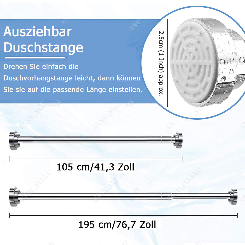 Info zu diesem Artikel Kein Bohren & einfach zu montieren - Durch Drehen der Duschvorhangstange können Sie die Spannstange schnell und einfach installieren, um sich auszudehnen oder zusammenzuziehen, ohne Bohren, Schrauben oder irgendwelche Werkzeuge. Robust und rostfrei Was ist mehr: Alle Produkte von Nice Houseware unterliegen einer strengen Qualitätskontrolle vor dem Versand, wir haben großes Vertrauen in unsere Produkte. Perfekt für Badezimmer, Küche, Schlafzimmer und Balkon. Diese Duschvorhangstange wird nicht durchhängen, verbiegen oder fallen. If you meet any quality problem within 12 Months, contact us and we will ship a new replacement to you directly. You can use it with a shower curtain rod at the door for privacy or with a curtains at the bedroom window for shading. Verstellbar - Diese verstellbare Duschvorhangstange kann von 81,3 bis 80 Zoll verlängert werden, um verschiedene Raumgrößen zu passen. PHOS Edelstahl Design, DR700HD, Halbkreis Duschstange, Breite 140 cm Duschstange Zum Klemmen AWERQ L Form Duschvorhangstange Mit Duschvorhang Und Haken, Duschvorhang Teleskopstange Ohne Bohren Edelstahl Ecke Badezimmer Stange Silver-70 To 95cm × 105 To 165 Cm Duschvorhangstangen Für Fenster Duschvorhangstange, 81,3–203,2 cm, gebogene Duschvorhangstange, ohne Bohren, Edelstahl, schwarz, Duschstange für Badezimmer, Fenster, Raumteiler, rostet nicht, rutschfest Hohe Tragfähigkeit – Die Duschstange hat eine schwere Tragfähigkeit von 15 kg und verbindet sich mit zwei 3 mm vollsoliden Bodenenden.