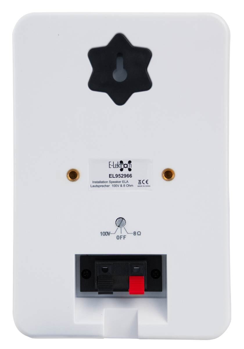 100Volt-Ela-Lautsprecher, EN 54-24 zertifiziert PA-Box, passiv, Tieftönergröße 8 Zoll, 8 Ohm. 2 Angebote. ab68,99 €. E-Lektron ... MwSt. E-Lektron HiFi Chassis Bass-Lautsprecher Woofer 8 Ohm Einbau (CSP20-8"... WandlautsprecherE-Lektron M-255 passiv Eigenschaften:- Passiver Lautsprecher inkl. Wandhalterung - Betrieb an Stereo-Verstärker (8 Ohm) oder ELA Verstärker (100 V) umschaltbar - Kunststoff-Gehäuse und Metallschutzgitter - Inkl. Eine Wandhalterung aus Metall ist mit im Lieferumfang. Wandhalterung Technische Einzelheiten:Leistung: 25W RMS Impedanz: 8 Ohm / 100V ELA (umschaltbar) Frequenzgang: 90Hz - 18kHz Lautsprecher: 5., 25 / 16cm Breitband Maße: 23(H) x 16(T) x 13., 5(B) cm Gewicht: 1., 8kg E-Lektron M-255 100V ELA Lautsprecher 5" Weiß, wasserdicht, inkl.Wandhalterung. Der Lautsprecher kennzeichnet sich durch eine klare Wiedergabe und eignet sich perfekt zum Einsatz in einer Beschallungsanlage für Hintergrundmusik und Ansagen Wand-/Decken-Halterung aus Metall - Anschluss über Rohkabel-Klemmen - Wandhalterung aus Metall Lieferumfang:1 St., M-255 Lautsprecher 1 St. Lautsprecherboxen Für Stereoanlage E-Lektron EL214-P Soundsystem Partybox, Tragbare Lautsprecherbox Denon 150