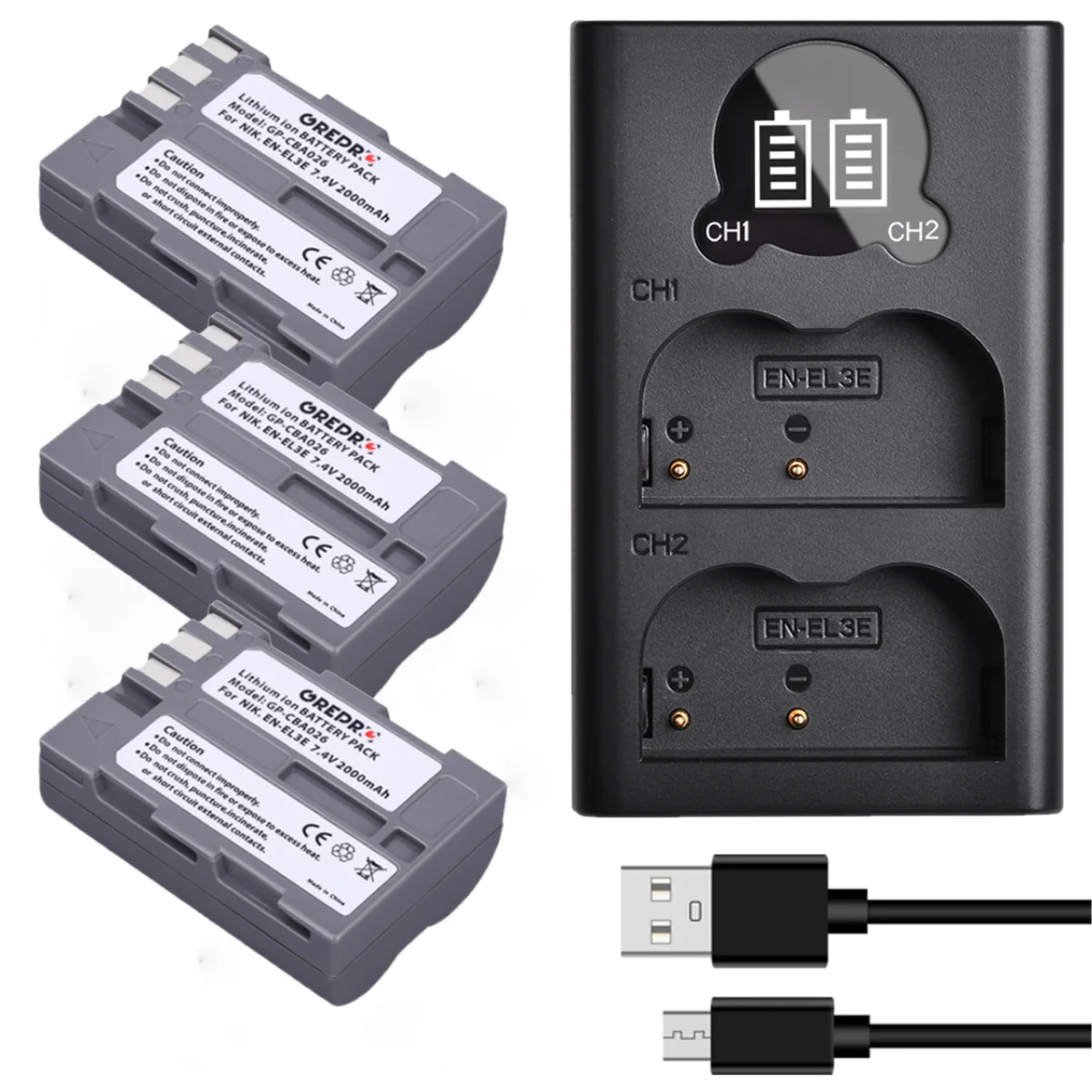 Usb Ladegerät DuraPro 2 X EN-EL3e EN EL3E Battery + LED Dual Built-in USB Ladegerät Usb 96W USB-C Power Adapter Ladegerät Type-C für Apple Macbook (Neu und... Compatible with: Nikon D50 Nikon D70 Nikon D70s Nikon D80 Nikon D90 Nikon D100 Nikon D200 Nikon D300 Nikon D300S Package Includes: 2X EN-EL3E Batteries 1 X LCD Dual USB Charger 1X USB Charging Cable 1X Manual Extra Power,More Shots for Your Cameras. PATONA 2X Akku Ersatz für Nikon EN-EL3E, ENEL3E Batterie Kompatibel mit Nikon D40x, D50, D60, D70s, D80, D90, D100, D200, D300S, D700, D900, D3000, D5000 PATONA Akku passend für Nikon D100 Akku EN-EL3e 1800mAh | D100 | Nikon | Akku Specifications: Battery Type: Li-ion Capacity:1800mAh Volts:7., 4V Very convenient whilst out on trips; Micro-USB input: Multiple Charging Options: charge with a USB wall charger, car charger, Portable Power Source, or cellphone adapter.