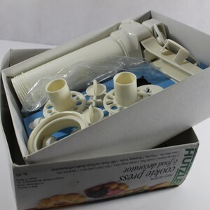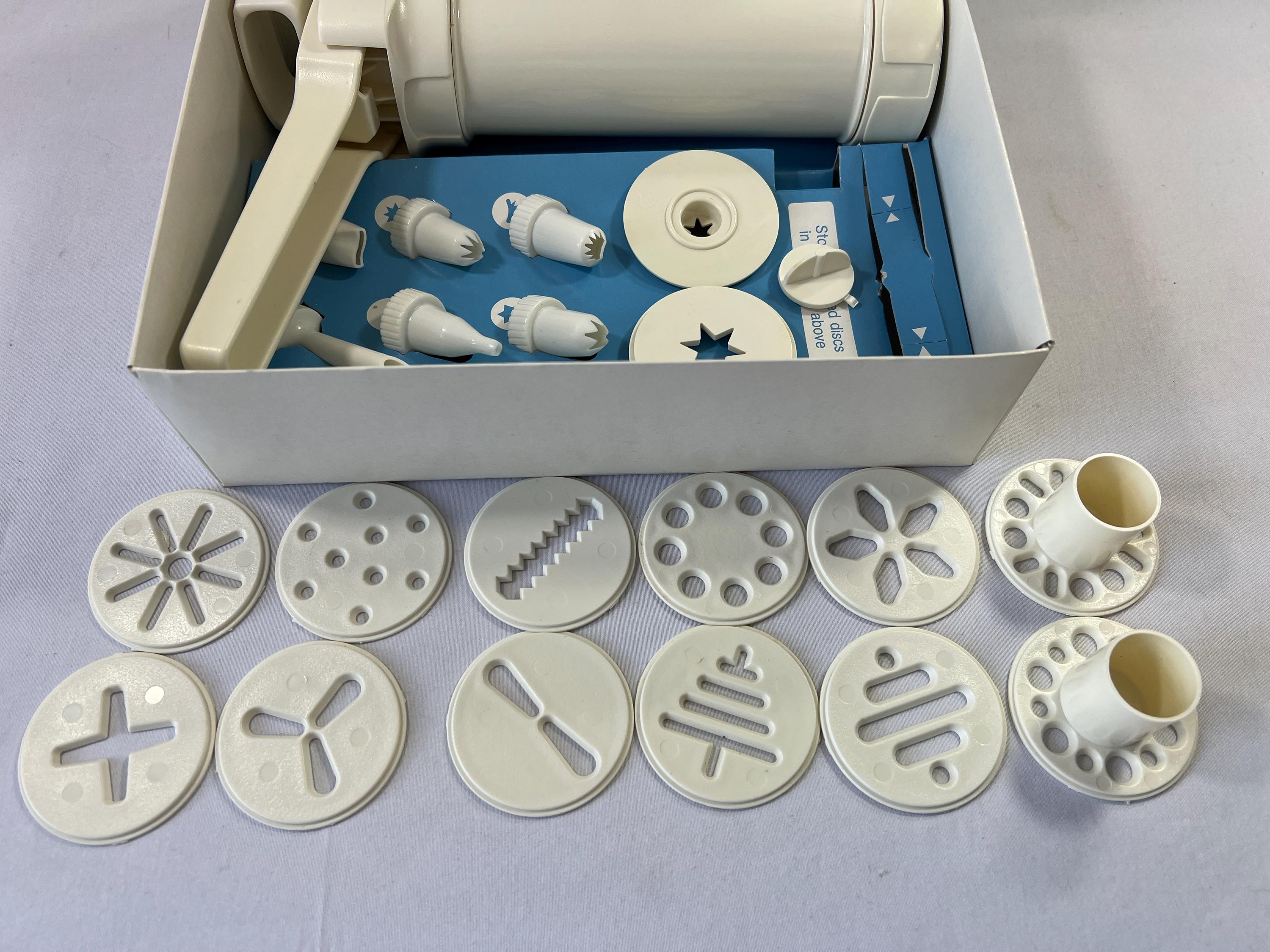 Es verwandelt sich in einen Lebensmitteldekorateur, so dass Sie Kuchen und Kekse verzieren können, verfälschte Eier, zweimal gebackene Kartoffeln usw., machen können. Hergestellt aus robustem, robustem, BPA-freiem Kunststoff, der Ihrem Teig keinen metallischen Geschmack verleiht. Es dauert nur 2 einfache Schritte, um ein perfekt geformtes Keks zu bekommen: Heben Sie den Griff, klicken Sie nach unten. Macht Kekse, Macarons, Pasta und Käse Strohhalme. Sie werden erstaunt sein, wie schnell Sie schöne perfekte Kekse machen können. Bewegen Sie sich in Ihrem eigenen Tempo, ohne zu drücken oder zu verdrehen Kekse ausdrücken war noch nie so einfach. Spritzgebäck Maschine Hutzler Easy Action Cookie Press And Food Decorator By Hutzler Fleischwolf Für Spritzgebäck Entwickelt, um die einfachste Gebäckpresse Sie haben immer verwendet werden; mit 12 verschiedenen Cookie Scheiben, 2 Scheiben erhältlich Cookie... Einfach in Ihrem eigenen Tempo bewegen, ohne zu drücken oder zu verdrehen. p>Hutzler Easy Action Cookie Press and Food Decorator, White/Turquoise. </p><br /><p>When possible, items are shipped within 24hrs of payment being received. International buyers are responsible for any additional taxes or fees imposed by your country Dies ist die einzige Plätzchenpresse, die 2-farbige Kekse herstellt (mit einer farbigen Mitte) EAZYFIX® Kartuschenpresse - EAZYFIX