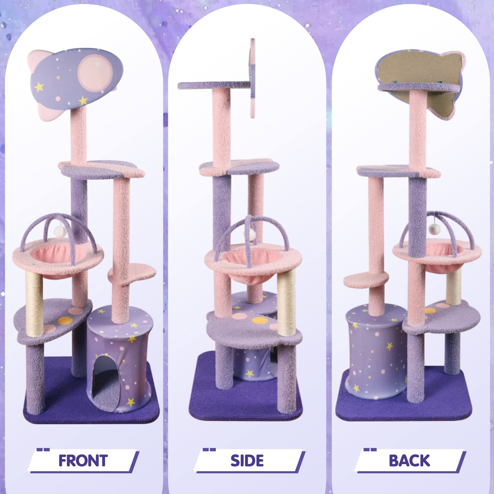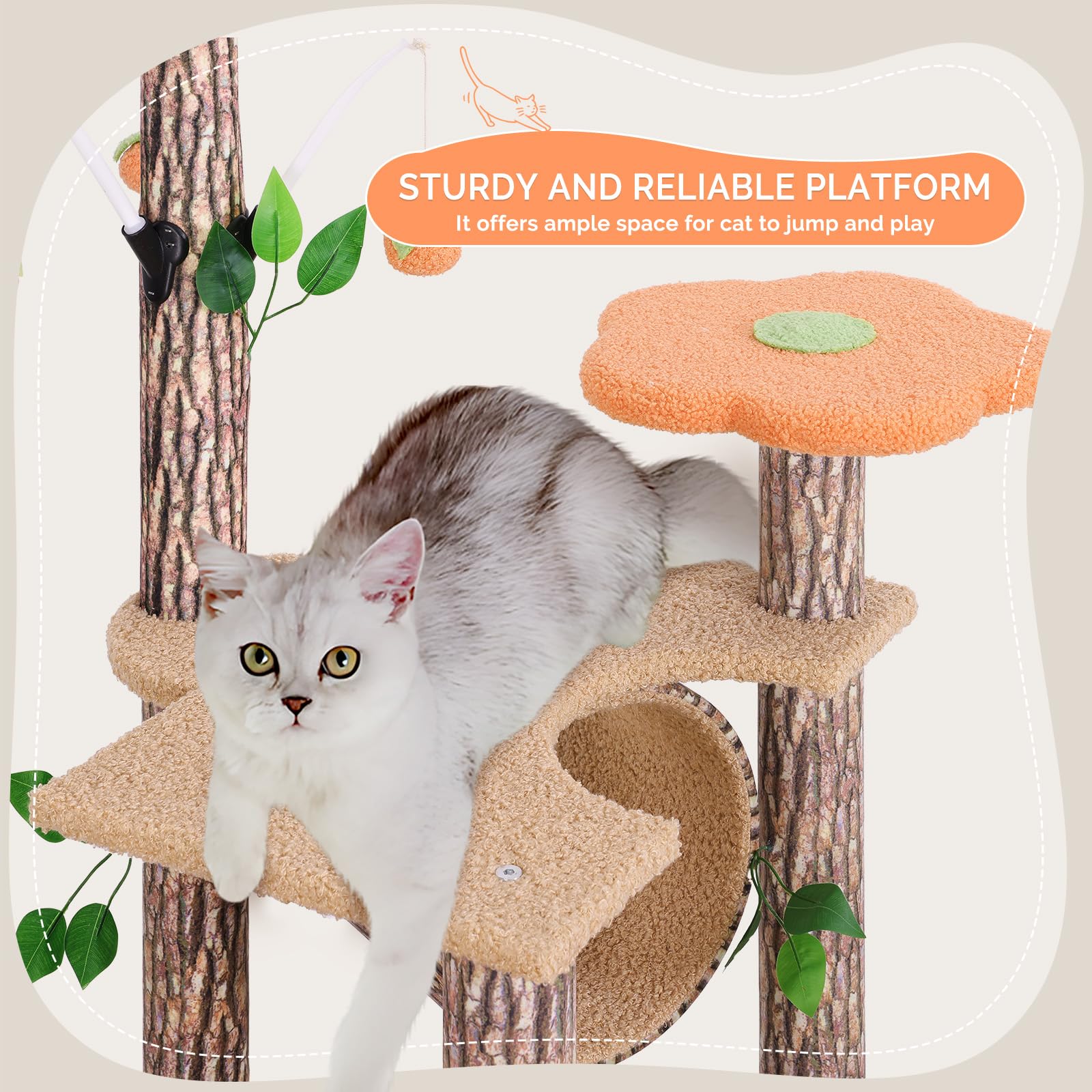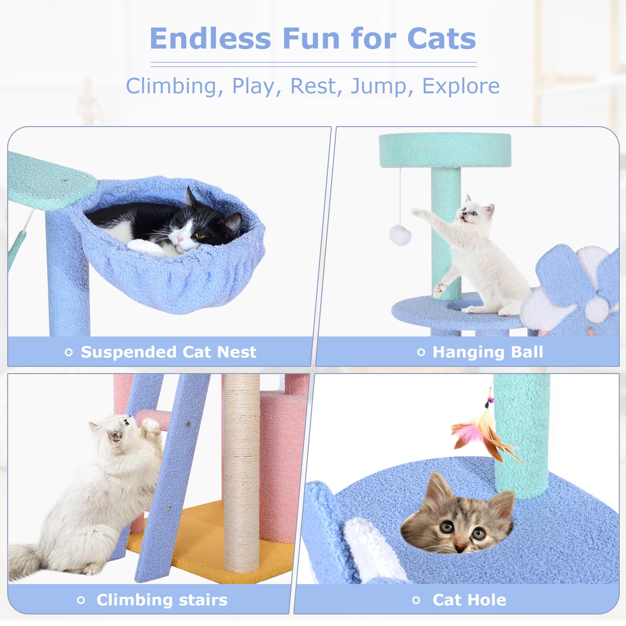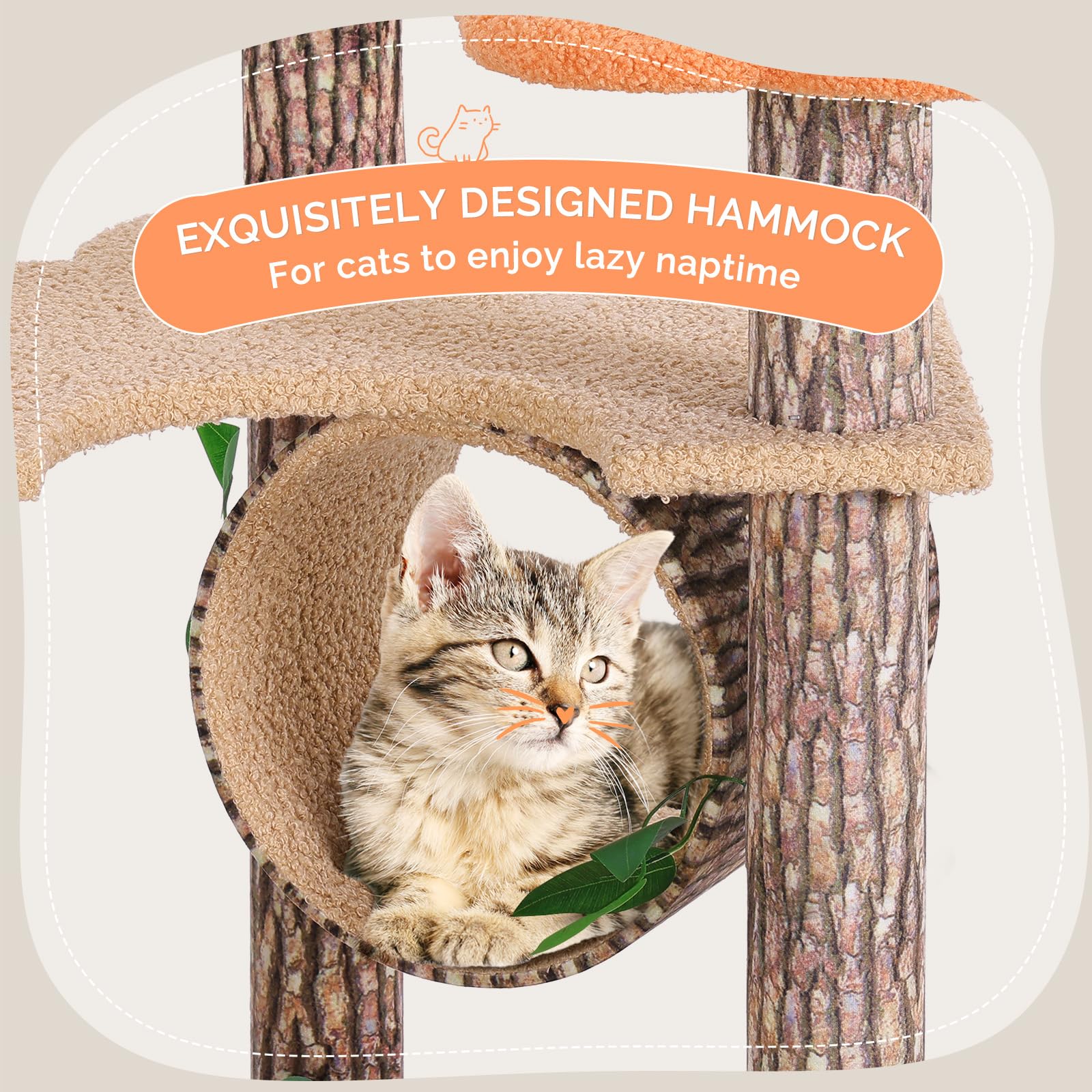 Kilodor Katzenbaum Mit Mehreren Ebenen, 124 Cm, Katzenturm Mit Sisal-Kratzbaum, Plüsch-Sitzstangen, Hängematte, Kätzchen-Spielhaus
