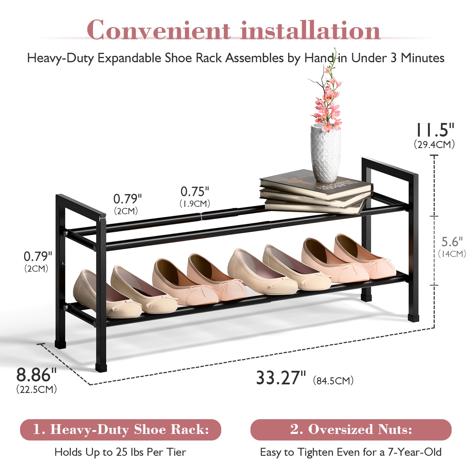 Schuhregal Metall Schuhregal Mit 2 Ebenen Aus Metall - Schuhregal Songmics Schuhregal Relaxdays Schuhregal ausziehbar, offener Schuhständer it 2 Ebenen Erweiterbares Schuhregal für den Schrank: Dieses Schuhregal wurde speziell für Schränke entwickelt und passt sich an enge Räume an und ist somit die perfekte Lösung, um Ihre Speicherkapazität zu erweitern. Verschiedene Optionen für Ihren Raum: Erhältlich in 2 bis 5 Ebenen und fünf Farben – schwarz, weiß, rosa, grau und silber. Das erweiterbare Schuhregal ist verstellbar für Ihre verschiedenen Schrankräume und Bedürfnisse. 【Einfache Montage, kein Werkzeug erforderlich】Ausgestattet mit übergroßen Schrauben (2,0 cm), ist das Regal einfach von Hand zu montieren. Perfekte Lösung, um Ihren Eingangsbereich, Schrank, Schlafsaal und Garage vor Unordnung zu schützen. Schuhregal mit 2 Ebenen aus Stahl, schwarz und gold WALK | Maisons du Monde Erweiterbares Schuhregal für den Schrank: Perfekt für den Schrank, dieses 5-stöckige Schuhregal erstreckt sich von 45,7 bis 83,8 cm und fasst bis zu 20 Paar Schuhe für Erwachsene Ausziehbares Schuhregal - Ausziehbare Schuhe Bequeme und ordentliche Aufbewahrung von Damen- und Herrenschuhen mit diesem verchromten, ausziehbaren, in der Breite verstellbaren und 485 mm tiefen Schuhregal, das in zwei Breiten erhältlich ist, so dass es immer in Ihren Schrank passt. Die Schienen Langlebige und stabile Struktur: Jede Ebene hält über 9 kg, und die 2,2 cm dicken Metallrohre sorgen dafür, dass das Regal stabil bleibt und nicht durchhängt, auch wenn es vollständig auf 112 cm ausgezogen ist.