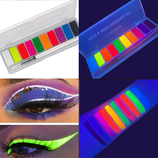 Uv Stift Ecofavor Water Activated Eyeliner Pastel, UV Reactive Pastel Cake Eyeliner, 10 Color In 5 Cake Hydra Eye Liner,UV Glow Blacklight Body Face Makeup Paint, Costume Halloween And Club Makeup Art Paint Glow In The Dark Farbe Wasser basierte aktivierte zweifarbige Glow Neon UV-Gesichts farbe Körperfarbe M Wasseraktivierter Eyeliner, Glow Neon Cake Paint, 12 Bright Color Hydra Eye Liner, UV Glow Blacklight Luminous Body Face Makeup Paint, Costume Halloween und Club Makeup Art Paint (A