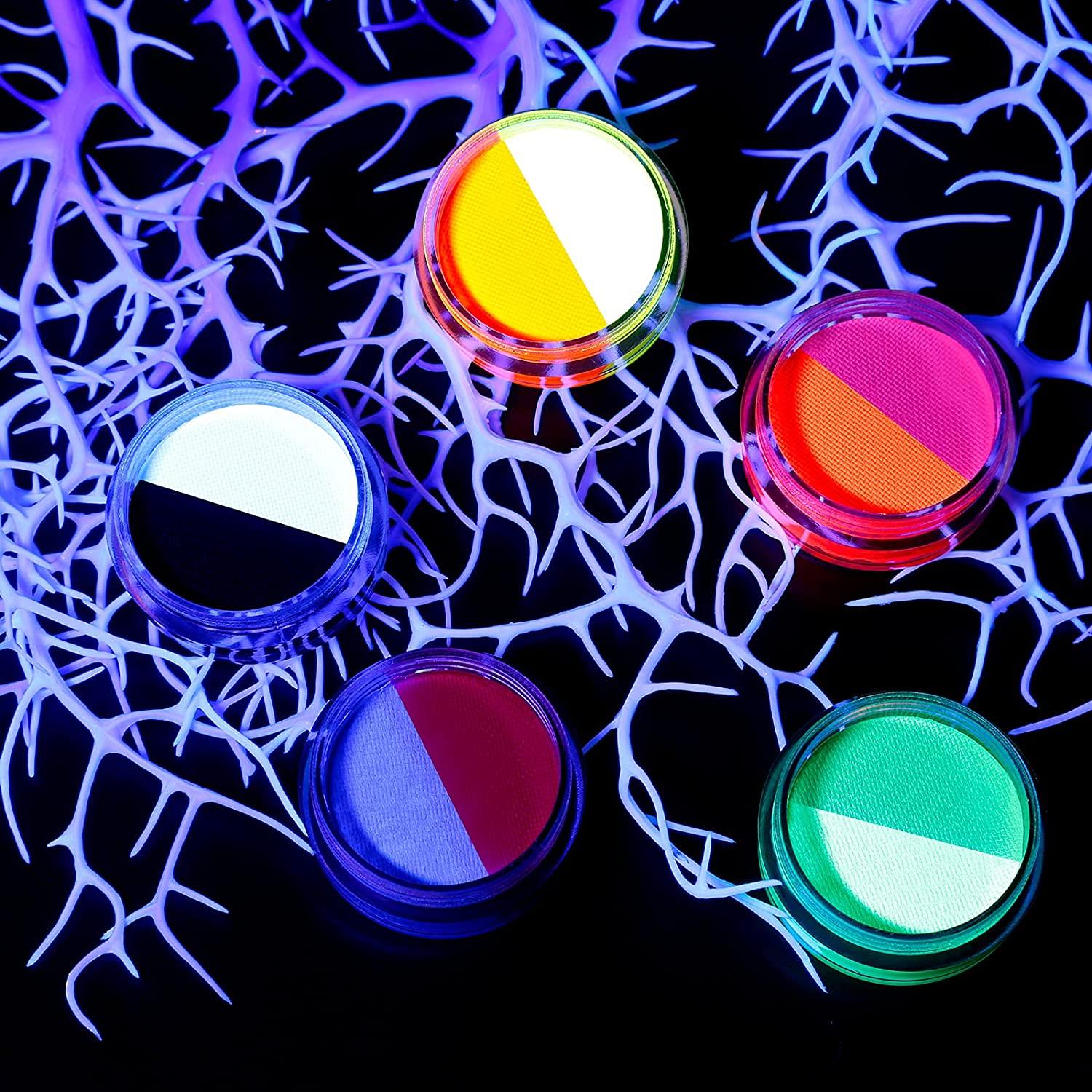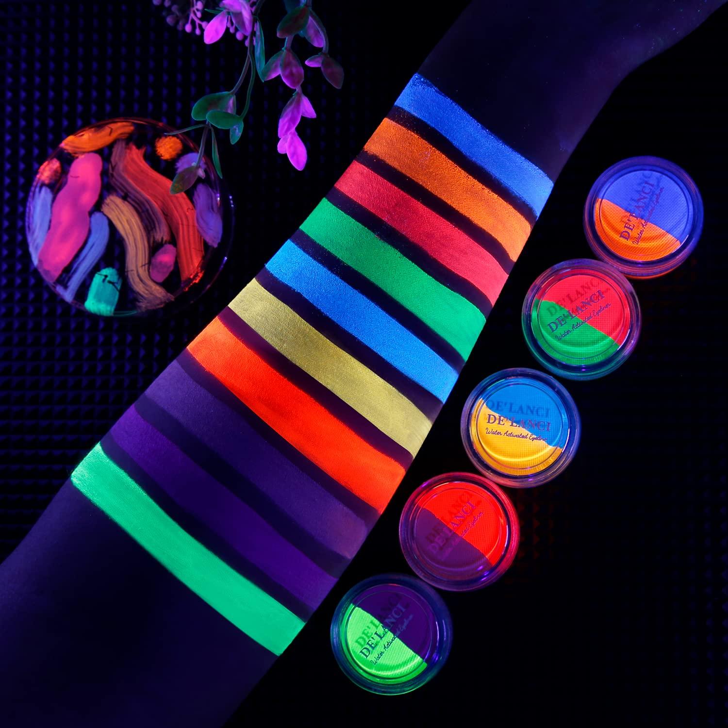 Ecofavor Water Activated Eyeliner Pastel, UV Reactive Pastel Cake Eyeliner, 10 Color In 5 Cake Hydra Eye Liner,UV Glow Blacklight Body Face Makeup Paint, Costume Halloween And Club Makeup Art Paint