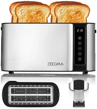 ZEEGMA TOSTEE SMART 4 Scheiben Edelstahl Brottoaster, Brötchenhalter, 1500 W, Auftauen, Aufwärmen & Stoppen, Krümelfach, Touchpanel, Timer, 6 Stufen
