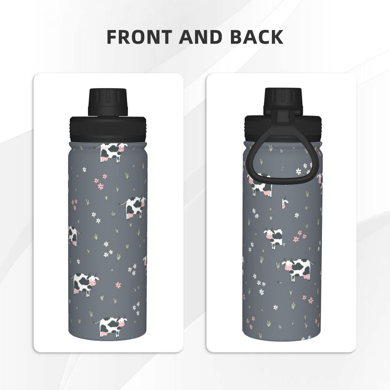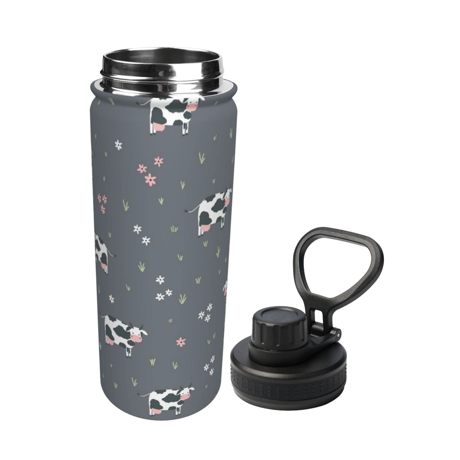 Niedliche Kuh-Sport-isolierte Wasserflasche Aus Edelstahl, Wasserkocher, Neuheit, Tragbarer Wasserbecher Für Outdoor-Sport, Fitnessstudio, Reisen, 530 Ml