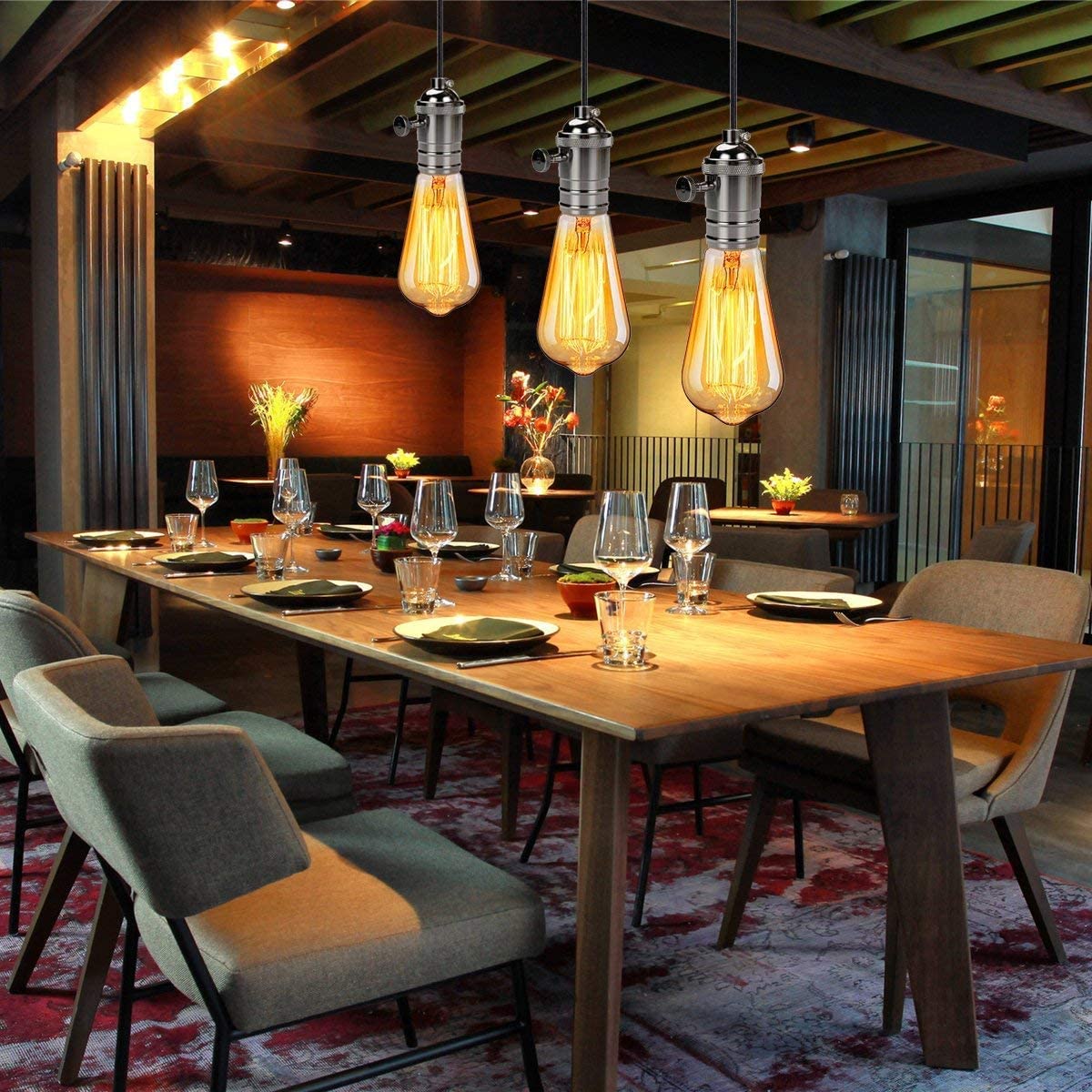 Möbel24 | KINGSO Vintage Retro Hängeleuchte Edison Antike Pendelleuchte Diy Lampe Mit Dimmbarem Schalter Und Stecker 3 E27 Fassungen Textilkabel Imitation Bronz