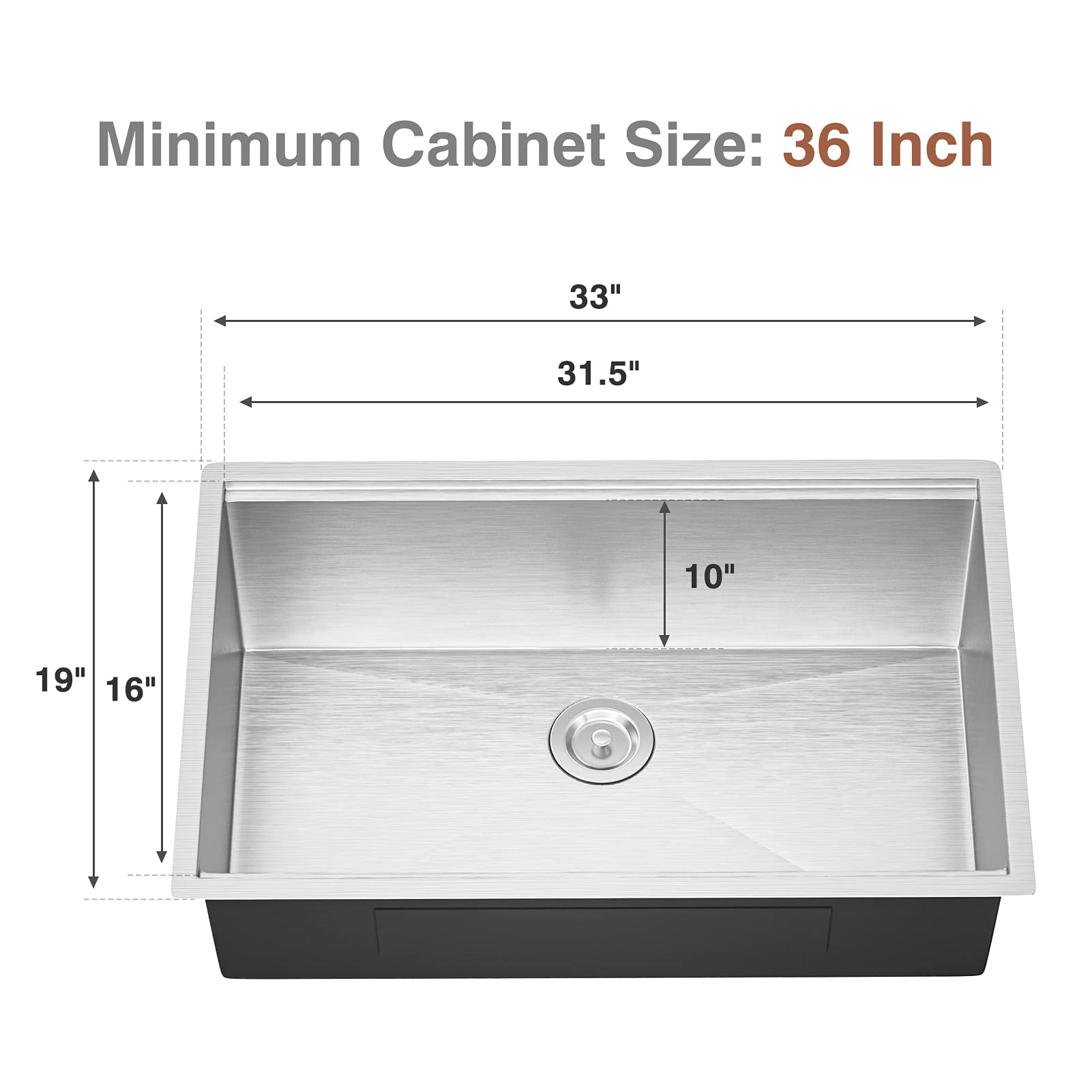 Beschichtung und 3 mm dickes Gummi-Schalldämpfer-Pad können Kondensation verhindern und Arbeitsgeräusche reduzieren. Es nutzt die Spüle Platz und spart gleichzeitig wertvolle Zeit. Kitchen Sink Einbauspüle Edelstahl Gebürstet 1 Becken Sie müssen sich keine Sorgen um lästige Kratzer und Rostrillen machen, weil es starke Haltbarkeit und lange Lebensdauer hat. 【Workstation-Spüle】 Die Spüle im Arbeitsbereich hat eine Stufe, die verschiedene eingebaute Zubehörteile schieben kann, um die Spüle in einen Arbeitsbereich umzuwandeln, zum Beispiel ein Schneidebrett und Sieb können darauf platziert werden und frei gleiten. Oberfläche: gebürstet Spülbeckengröße: 83 x 48 x 25 cm (L x B x H)., Installationstyp: Unterbau., Ablauflochgröße: 8,9 cm. Wir behalten immer das Konzept, dass Spezialität in der Technik, Fortschritt in der Handwerkskunst und Genauigkeit im Detail. 【Einzigartiges Design】 Die X-förmige Wasserführung lässt das Wasser reibungsloser abfließen, wodurch die Spüle leichter zu reinigen und seine Schönheit beizubehalten. 33 schwarze Doppel-Küchenspüle Unterbau - Sarlai 83,8 cm Küchenspüle 【Garantie】3 Monate problemlose Rückgabe und Geld zurück. Größe und Verpackung: 83,8 x 48,3 cm (minimale Schrankgröße ist 91,4 cm); die Pakete werden mit 83,8 x 48,3 cm Unterbau-Arbeitsplatzspüle, Schneidebrett, Sieb, Abflusssieb, Rollentrockengestell, Unterspülgitter, Ausschnittschablone, Montagezubehör und Installationsanleitung (evtl. Strapazierfähiger TRU 16 Gauge T304 Edelstahl, 1,5 mm dick, kann nahtlos über der Arbeitsplatte sitzen. Hochwertiges Material – Die Unterbauspüle aus Edelstahl mit Noise Defend-Technologie mit größeren und dickeren Schalldämpfer-Pads auf allen Seiten, um Lärm und Vibrationen zu verhindern nicht in deutscher Sprache). Größe und Verpackung: 83,8 x 48,4 x 25,4 cm (minimale Schrankgröße ist 83,8 cm). Die Pakete werden mit einer 76,2 cm Unterbauspüle, Abflusssieb, Rollentrockengestell, Bodenspülgitter, Ausschnittschablone, Montagezubehör und Montageanleitung geliefert. [Garantie]Eingeschränkte lebenslange Garantie 1 x Unteres Gitter 1 x Ausschnittschablone., 1 x Befestigungsmaterial., 1 x Montageanleitung (evtl.