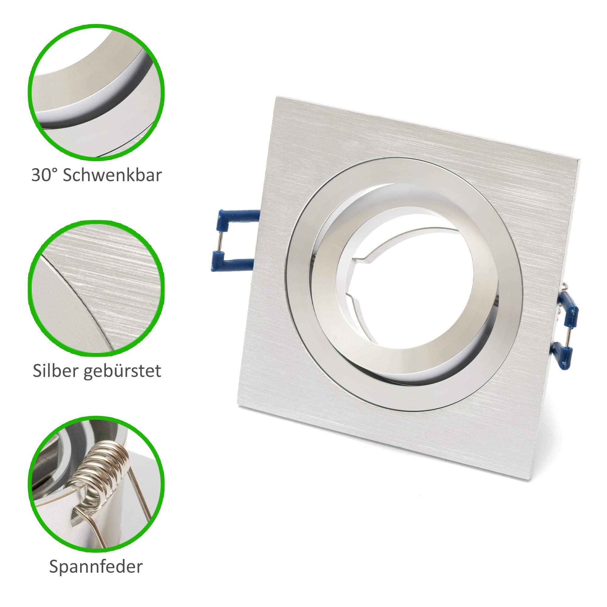 linovum 10er Set Feuchtraum Einbaustrahler Rahmen IP65 für Bad & Dusche 30° schwenkbar was Ihnen ermöglicht das Licht im Raum gezielt in ein Bereich oder auf ein Objekt zu richten 30° SCHWENKBAR Sie selbst bestimmen ob Sie Ihre Einbauleuchten eher als auffälliges oder aber als ganz diskretes Lichtelement im Raum anwenden. unser Ziel ist es eine Beleuchtung zu realisieren, die perfekt auf Ihre persönlichen Bedürfnisse abgestimmt ist. Aus diesem Grund bieten wir Ihnen ausschließlich bewährte Markenartikel an, von deren Qualität wir selbst zu 100 Prozent überzeugt sind. ► MATERIAL UND FARBE: Der robuste Einbauspot besteht aus Aluminium in Silber gebürstet Optik Mit diese schwenkbare GU10 Einbaustrahler Rahmen bekommen Sie ein modernes Design, das sich mit einem flexiblen Einrichtungselement paart. Die GU10 Einbaurahmen besteht aus hochwertigem Aluminium, das optisch wie gebürstetes Alu wirkt und einen sehr hochwertigen Eindruck hinterlässt ► SET: Im Set erhalten Sie 10 platzsparende Einbauspots mit Außendurchmesser 92mm | Lochbohrung ca. Wählen Sie die Lichtfarbe je nach Ihren Bedürfnissen im Raum aus, ganz gleich ob Sie im Bereich Lesen, Kochen, Arbeiten, etc. 80-85mm Einbautiefe mit Leuchtmittel ca. 10x GU10 Fassungen (ohne Leuchtmittel) EINFACHES TAUSCHEN Kinderleichtes tauschen der Leuchtmittel mit einer einfachen Umdrehung! Egal ob LED oder Halogen, Sie können alle Leuchtmittel mit 50mm Durchmesser verwenden. PRODUKTVORTEILE Schlichtes & zeitloses Design , Kinderleichte Montage , Platzsparend , Kein Trafo erforderlich , 30° Schwenkbar ► LEUCHTMITTEL: Die GU10 Fassungen können Sie entweder mit LED, Halogen oder anderen GU10 Leuchtmitteln ausstatten | Leuchtmittel werden zusätzlich benötigt ► ANWENDUNGSBEREICHE: Die LED Einbaustrahler 230v können Sie in allen Räumen in die Decke Wand oder Treppen einbauen und direkt ohne Trafo anschließen eine passende Beleuchtung ist für das Wohlbefinden und die gewünschte Atmosphäre im Raum sehr wichtig. Sockel der Leuchtmittel: GU10, Betriebsspannung: 230V, Aussendurchmesser: 92 mm, Lochbohrung ca., 75-85 mm Logikrätsel Erwachsene Linovum LED Einbaustrahler 10 X LED Einbaustrahler Alu Gebuerstet IP65 Warmweiss 4W Module 230V, Warmweiß Led Einbaustrahler Set Gu10 GU10 LED Einbaustrahler sind die ideale Wahl für eine vielseitige und moderne Beleuchtung im Innenbereich. Durch die genormte GU10 Fassung lassen sich verschiedene LED für Einbaustrahler einsetzen – ganz nach individuellem Bedarf in Lichtfarbe, Helligkeit und Abstrahlwinkel TECHNISCHE DATEN - ALU EINBAURAHMEN GU10 Typ: ALU Einbaustrahler GU10, Material: Aluminium, Form: Rund ► SCHWENKBARKEIT: Der Spot ist um ca.