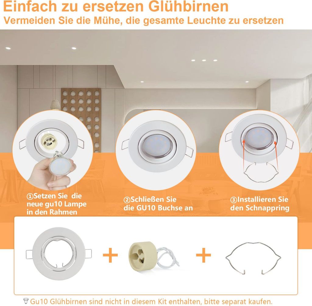Hinweis: Die Leuchtmittel sind nicht im Lieferumfang enthalten. Klassisches und praktisches Design Das angenehme Licht erfüllt die meisten Ihrer Beleuchtungsanforderungen und macht Ihr Zuhause, Schlafzimmer, Büro modischer und modischer. Bitte zögern Sie nicht, uns zu kontaktieren, wenn Sie Fragen haben. LED Einbauleuchte / Einbauspot in stabiler Ausführung. Eine warme Atmosphäre Diese Strahler sind Ihre beste Wahl, wenn Sie in einer harmonischen, entspannenden und angenehmen Atmosphäre sein möchten. Hervorragende Verarbeitung aus mattem Metall unter Dicke, nach der Rostbehandlung, keine Flecken, keine Kratzer, kein Rost. Lieferumfang: 10 x Einbaurahmen für Leuchtmittel in mattem Weiß. 31.935 Angebote zu GU 10 Einbaurahmen im Einbauleuchten Preisvergleich. Bei günstige Preise für GU 10 Einbaurahmen vergleichen Das Leuchtmittel wird auf dem Rahmen installiert, die Keramikfassung wird mit dem Draht verbunden, dann mit der Glühbirne verbunden., Montagehinweis: 3 3., Drücken Sie die Federn der Deckenleuchte und stecken Sie sie in das Loch. Der weiße quadratische Flutlicht lässt sich leichter in die Decke integrieren, was natürlich und edel aussieht. Hochwertige Anschlussdose Keramikqualität GU10 Fassung VDE, Zulassung. 10 Stück GU10-Fassungen ( mit Kabel und isolierender Hülse). Einbautiefe mit Leuchtmittel: ca., 70-75 3-Wege-Klemmenblock, Keramikqualität GU10, Fassung VDE Zulassung. 40° schwenkbar Verwenden Sie die Projektoren als einfache Beleuchtung oder verwenden Sie den 40° Schwenkwinkel, um den Fokus des Lichts speziell auf einzelne Objekte oder Räume zu lenken. Im Lieferumfang erhalten Sie auch eine GU10 Fassung für jeden Einbaurahmen, die Sie mit einer GU10 Lampe Ihrer Wahl kombinieren können. Gu 10 Fassungen Allesgute 20er LED Set Schwenkbar 230V Einbaustrahler Gu10 So können Sie sie so oft Sie möchten wechseln, während Sie den gleichen Rahmen beibehalten, vorausgesetzt, es handelt sich um eine Glühbirne mit 50 mm Durchmesser. Das klassische und elegante Design sorgt für eine gemütliche und warme Atmosphäre. Hochwertige Produktionstechnologie Rahmen für Projektoren, flache Kanten, keine Verletzung der Hand. Vorteile des Spot-Rahmens Einfacher Austausch: Wenn die Glühbirne kaputt ist, entfernen Sie die alte Glühbirne direkt und ersetzen Sie sie durch eine neue ohne die gesamte Lampe zu demontieren. Hyne Lachen Überblick deckenspots 68 Geälde Auerochse Solar Wasserdicht Wasserdicht IP 20, erfüllt die meisten Ihrer Anforderungen an die wasserdichte Dekoration, macht Ihr Haus, Schlafzimmer, Küche, Büro, Flur und Wohnzimmer modischer, Montagehinweise: 1 1., Schneiden Sie einen Kreis von 68 – 80 mm in die Decke, wo Sie die Deckenleuchte platzieren möchten., Montagehinweise: 2 2., Schalten Sie alle Netzteile aus. Lieferumfang: 10 x runde Einbaurahmen in mattem Weiß für Leuchtmittel + 10 x GU10-Fassung aus Keramik + 10 x Metallringe. Nettlfe Enbaurahmen 6ER Set GU10 Enbaustrahler Rahmen Enbauleuchte Der Einbaurahmen kann bis zu 40 Grad gedreht werden, sodass Sie die Lampe in einem beliebigen Winkel einstellen können. 26mm (Lieferung ohne Leuchtmittel)
