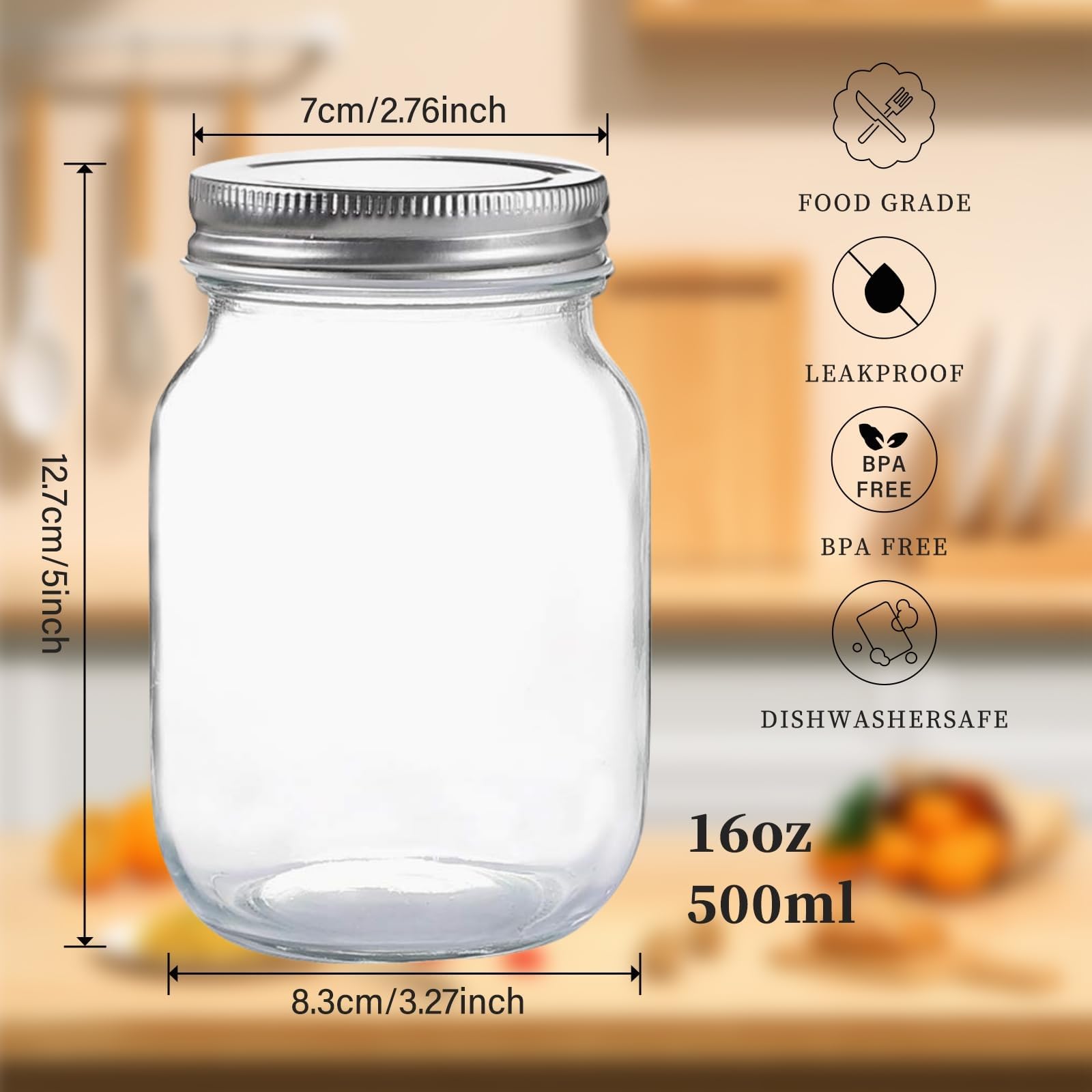 Einmachgläser, 473 Ml, Transparent, Mit Silberfarbenen Metalldeckeln Zum Versiegeln, Zur Aufbewahrung Von Lebensmitteln, Haferglas, Einleggläser, Trockenfutter, Snacks, Süßigkeiten, 6 Stück