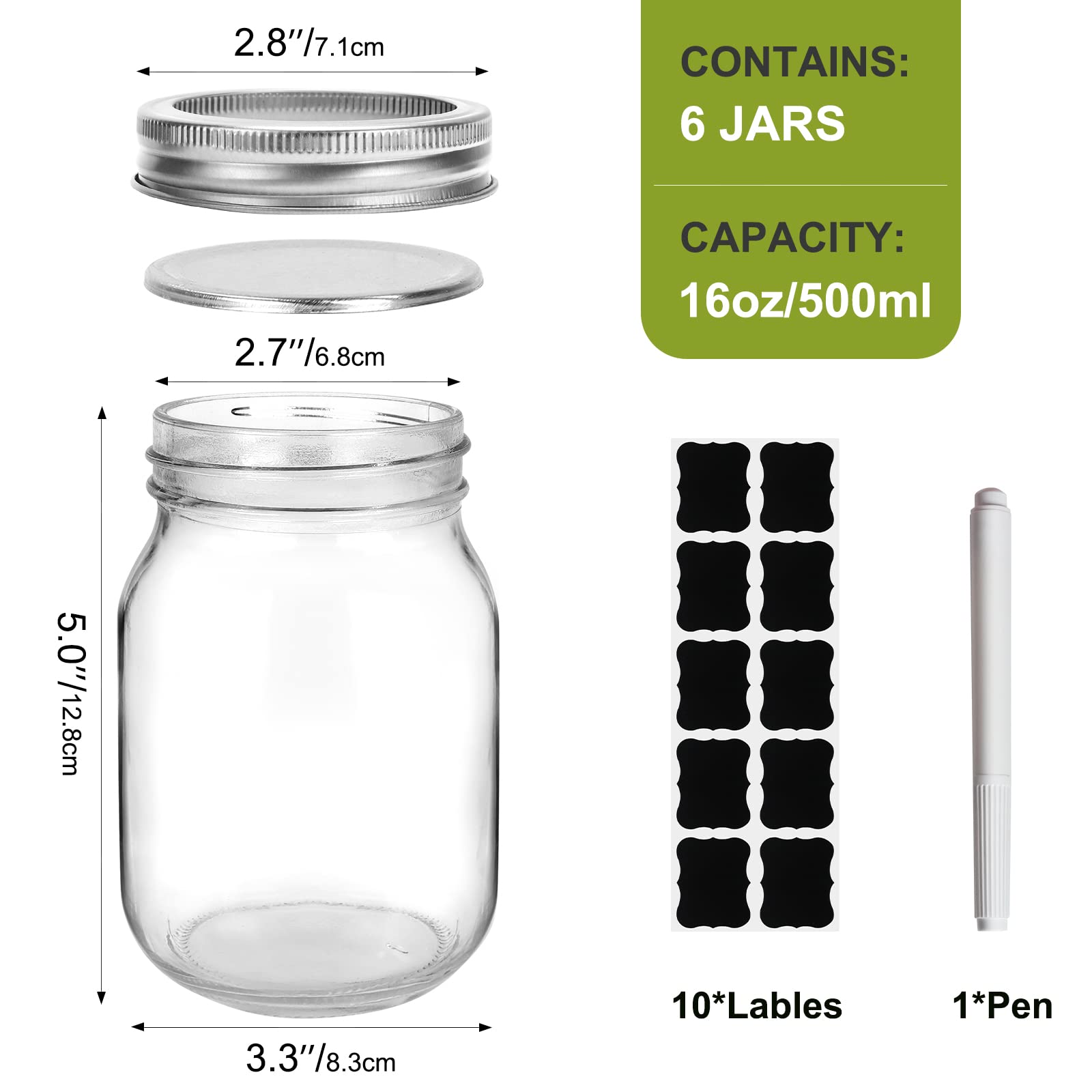 Einmachgläser Mit Breiter Öffnung, 473 Ml, 6 Stück, Mit Luftdichten