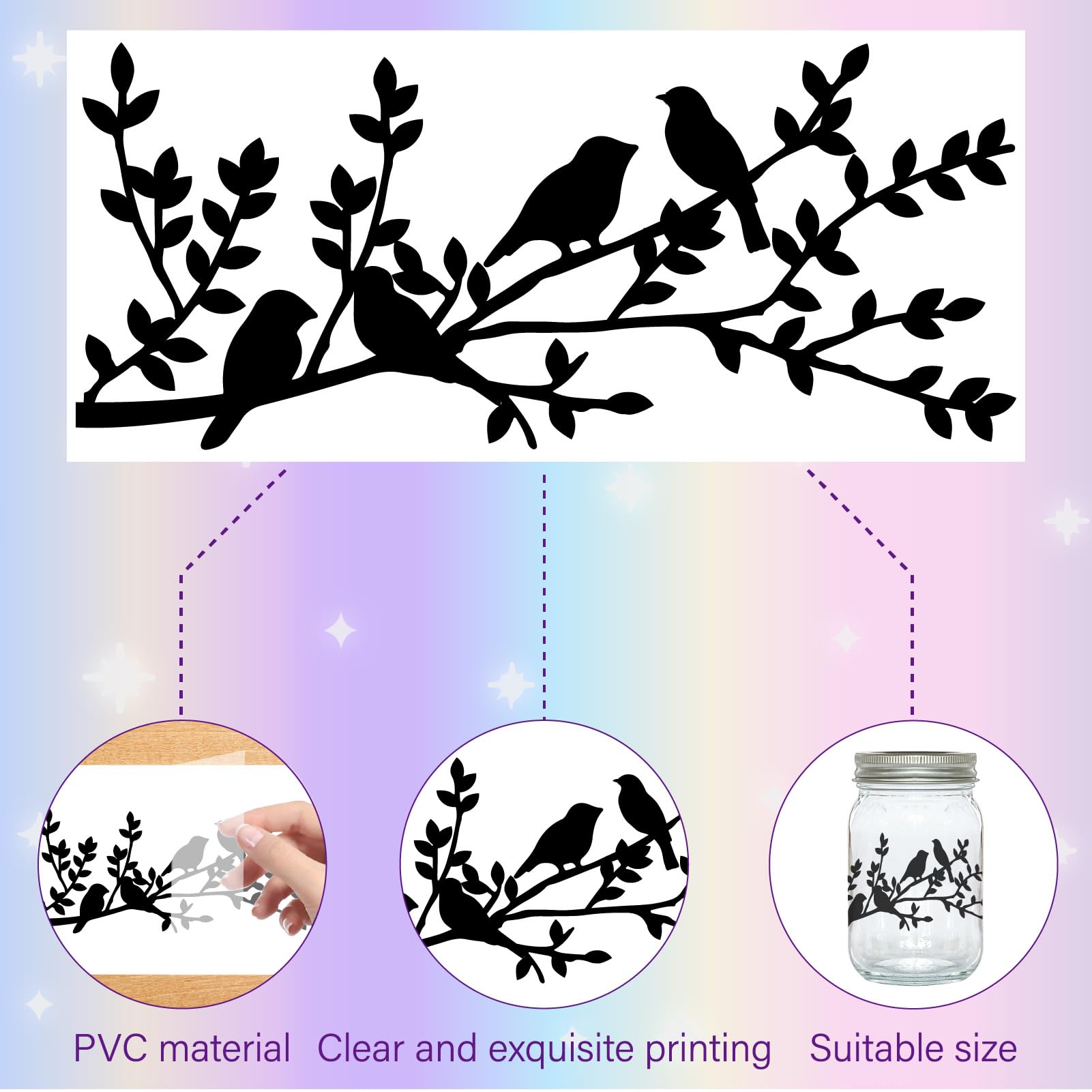 CREATCABIN 24 Stück Kolibri Silhouetten Einmachglas Dekor Vogel Blumen Karton Scrapbooking Aufkleber Lasergeschnitten PVC Wasserdicht DIY Bastelarbeiten Für Laternen Gläser Fenster Halloween 9x10cm