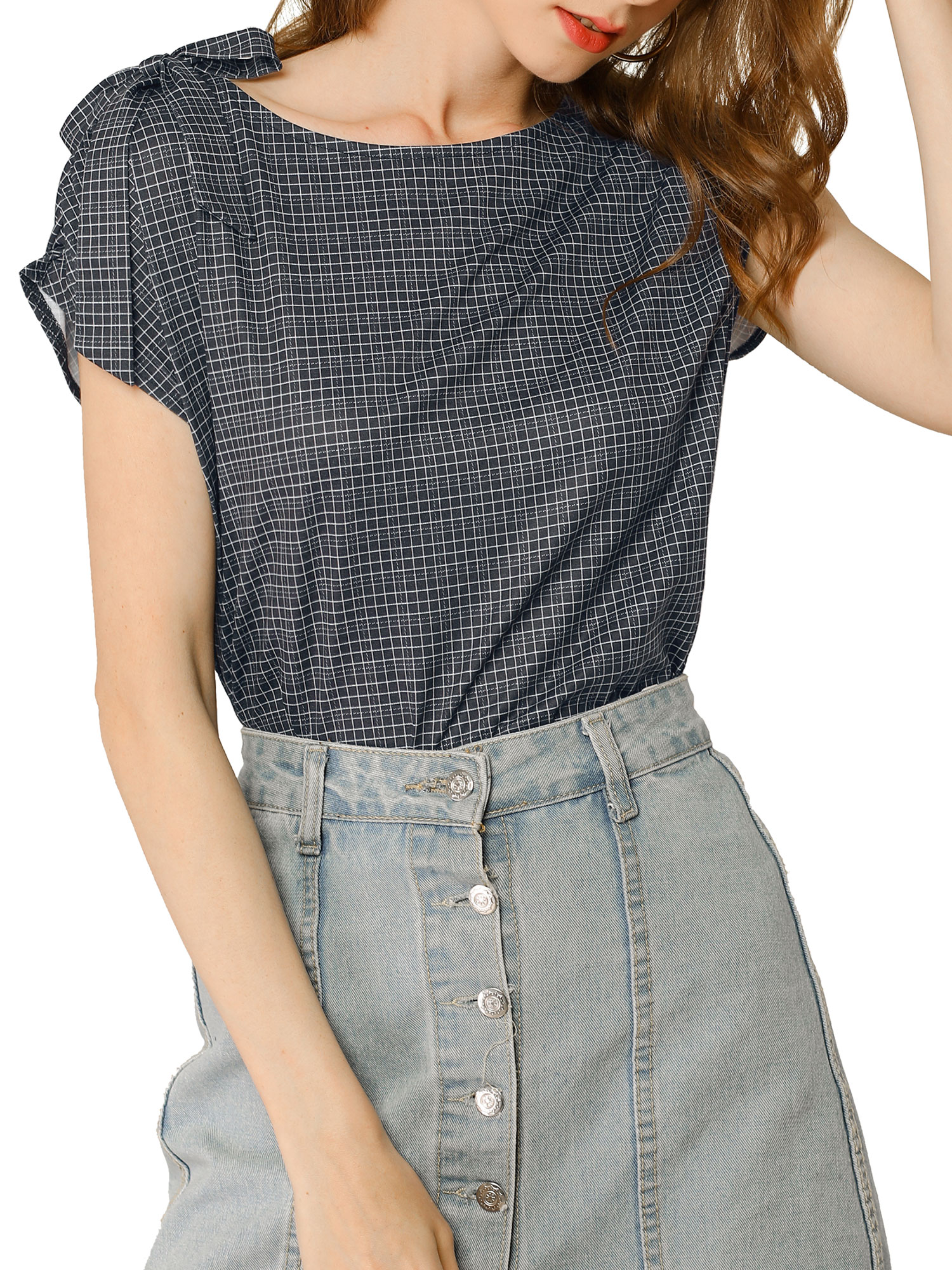 Allegra K Women Elbow Sleeves Round Neck Slim Fit Tee