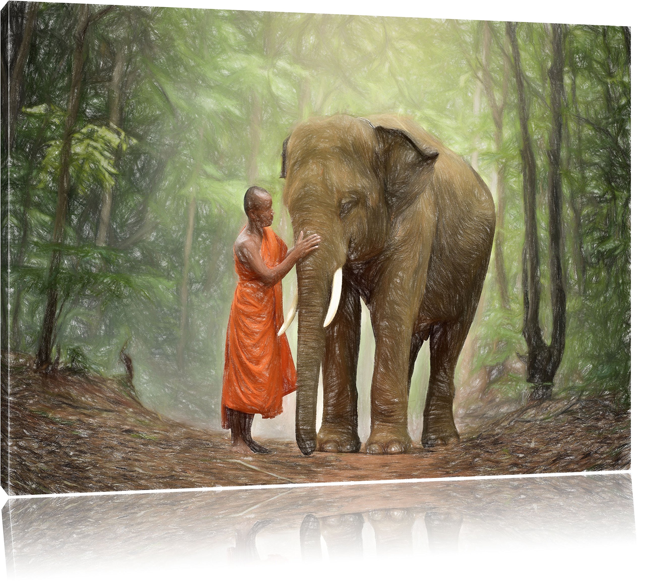 Pixxprint Glasbild Mönch Elefanten Wald, Mönch Elefanten Wald 1 St , Glasbild Aus Echtglas Inkl Aufhaengungen Und Abstandshalter S077f0no