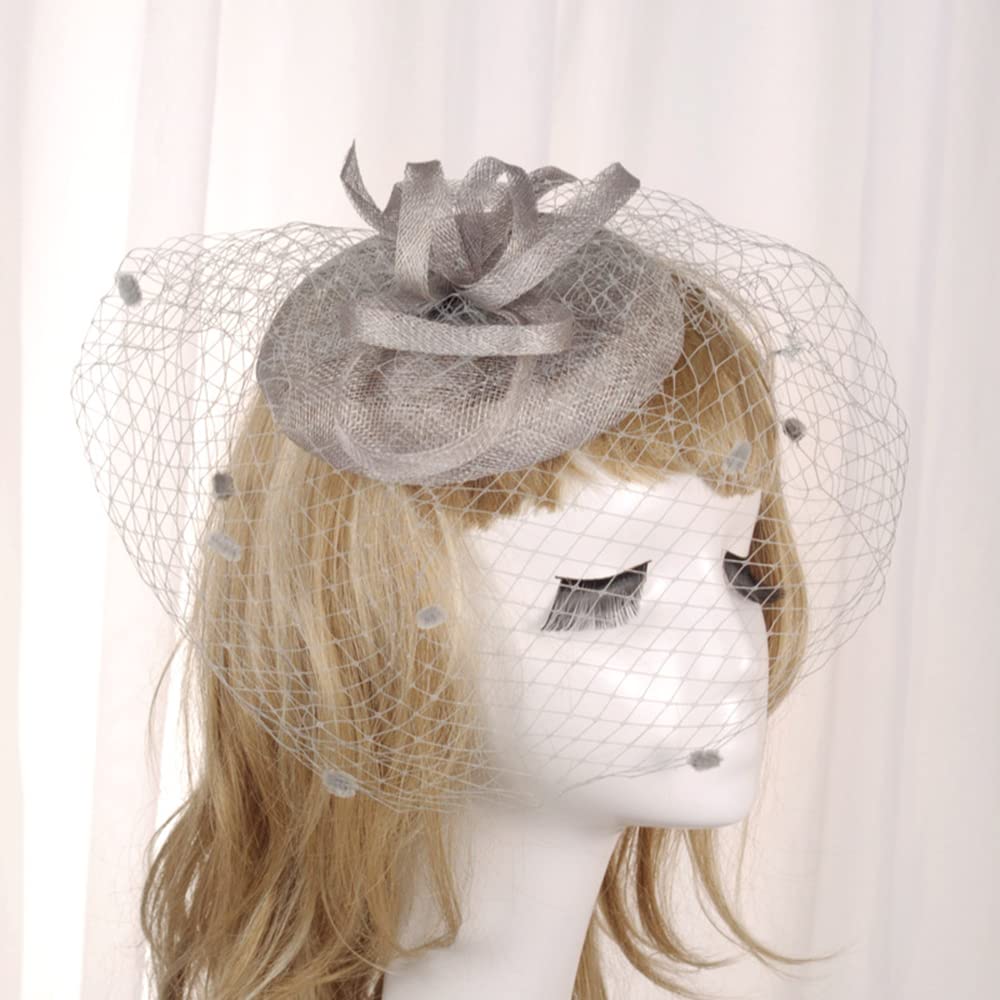 Damen Frauen Braut Haarschmuck Mit Schleier Pillbox Hut Elegant Netzschleier Vintage Headwear Hochzeit Fascinator Haarreif Cocktail Tee Party Cosplay Fasching Kostüm Accessoires Kopfbedeckung,Grau