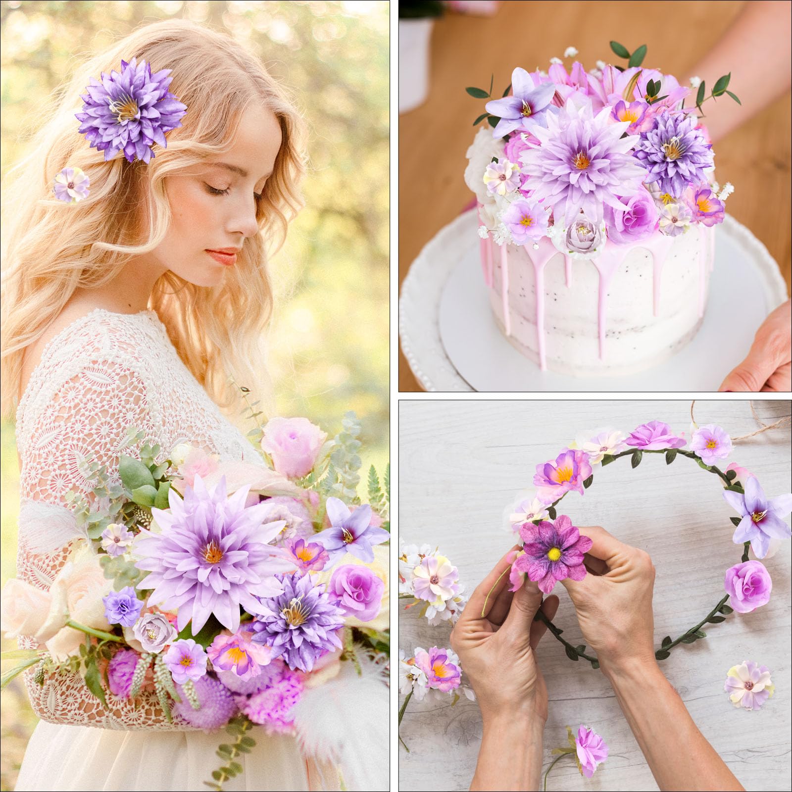 CYZBL 20 Stück Kunstblumen Köpfe Elegant Set, Mini Seidenblumen Köpfe Mix, Dekorative Kunstblumenköpfe Zum Basteln, Exquisit Klein Künstlich Blütenköpfe, Künstliche Blumenköpfe Für Hochzeit Basteln