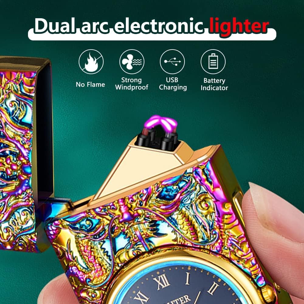 GADATOP Drache Feuerzeug Elektrisch Sturmfeuerzeug Plasma-Feuerzeug Elektrisches Bogenfeuerzeug USB-Feuerzeug Winddichtes Feuerzeug Mit Uhrendesign Verwendet Für Camping Und Exploration (Silbrig