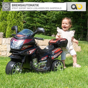 ✔ 2 x 45 Watt Motor ( Total 90 Watt ) ✔ Leise Hartgummireifen ✔ Zuschaltbare LED Scheinwerfer vorne & hinten ✔ Vorwärtsgang und Rückwärtsgang ✔ Türen zum Öffnen ✔ Sicherheit ► Soft Start ► Brems-Not-Stop-Automatik ► 2,4 Ghz Fernsteuerung ► 4 Punkt Sicherheitsgurt ✔ Federung vorne & hinten ✔ SD-Karte ✔ USB ✔ AUX […] BSD Elektromotorrad für Kinder ist ein elektrisches Kindermotorrad für Kinder im Alter von 18-36 Monaten. Es verfügt über einen 45W Motor, eine 6 V 4Ah Hochleistungsbatterie, Kunststoffräder mit Gummiband und LED-Frontleuchten Einfache Montage 20-30 Minuten (Anleitung enthalten) Hergestellt mit hochwertigen Materialien , Vordere LED-Leuchten , Empfohlenes Alter: 3 Jahre 6V/4Ah Akku Vorwärts/Rückwärtsgang Sound/Sirene Inkl.Ladegerät Maße ca. Elektromotorrad Für Kinder ATAA American Chopper Elektro-Motorrad Für Kinder | Ataa Cars Kinder Elektro Motorrad Dreirädriges Elektroauto für Kinder für Jungen Kinder-Aufsitz motorrad Alibaba.c Geniales elektro Kindermotorrad im Chopper Look. Angetrieben wird das Elektromotorrad von einem 25 W Motor. Der 6 Volt Akku mit 7 Ampere sorgt für lange...