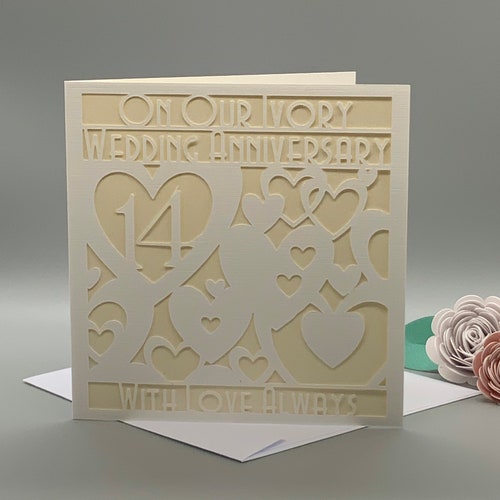 Elfenbeinfarben Happy 14. Anniversary Mit Love Auf Einer Speziellen
