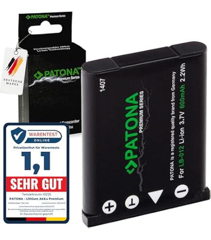 vhbw Ersatz für Panasonic VW-VBN260E-K, VW-VBN260E, VW-VBN260, VW Leistungsfähige Austausch-Akkus für Digitalkamera, Spiegelreflexkamera | Wiederaufladbar | Jede Akku-Zelle wird geprüft Ersatz für Kodak LB-060 Kompatibler Hochleistungsakku | Kapazität: 950 mAh | Spannung: 3,6 Volt | Nennenergie: 3,42 Wh | Zell-Typ: Lithium-Ion Selbstverständlich Einhaltung gesetzlicher Normen und Standards | Hochwertig verarbeitet | Langlebig im Einsatz Lieferumfang... vhbw - the clever way - Hochwertiger und kompatibler Wechsel-Akku mit hoher Kapazität für Ihre Kamera, Spiegelreflexkamera oder DSLR (alle passenden Modelle finden Sie weiter unten) - Der Akku kann mit dem Standard- oder einem kompatiblen Ladegerät geladen werden - Unsere Akkus und Batterien erfüllen alle betriebssicherheitsrelevanten Vorgaben LIEFERUMFANG: - 2x AkkuTECHNISCHE DATEN: - Technologie: Li-Ion - kein Memory-Effekt - Kapazität: 950 mAh - Spannung: 3,6 V - Nennenergie: 3,42 Wh - Anzahl der Zellen: 1 - Gewicht: 24 gFür eine gesicherte Kompatibilität prüfen Sie bitte, ob Ihr momentan verwendeter Akku aufgelistet ist. Leistungsfähige Austausch-Akkus für Digitalkamera, Spiegelreflexkamera | Wiederaufladbar | Jede Akku-Zelle wird geprüft Lieferumfang: 2x Akku | Ersatzteile, Wechselakkus & Zubehör von vhbw Selbstverständlich Einhaltung gesetzlicher Normen und Standards | Hochwertig verarbeitet | Langlebig im Einsatz Ladenvhbw 2x Akku Ersatz für Pentax LB-060 für Kamera (950 mAh, 3,6 V, Li-Ion). vhbw Ersatz für Kodak LB-060 für Foto / Kompaktkamera / Camcorder Digital Kamera-Akku Li-Ion 950 mAh, in der Farbe Schwarz Ersatz für Kodak LB-060 Ersatz Für Kodak LB-060 Für Foto Kompakt / Camcorder Digital 950 MAh Kamera Akku Li Ion 950 Mah S08630u4