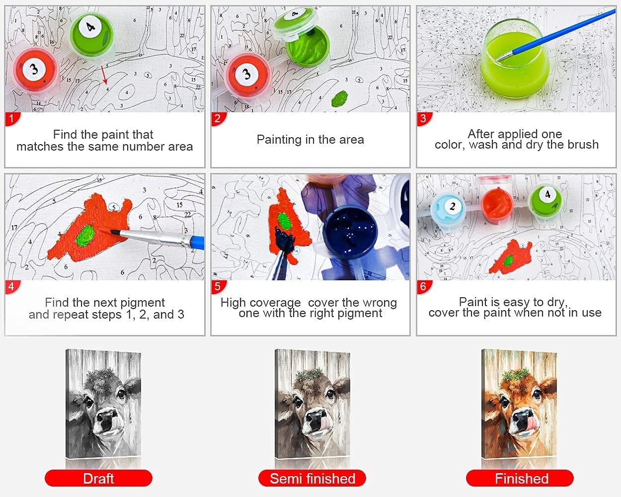 Shukqueen Malen Nach Zahlen Für Erwachsene DIY Öl Malen Nach Zahlen Erwachsene Kit Malen Nach Zahlen Kinder Erwachsene Anfänger Rose Auf Kuhkopf 50,8 X 66 Cm (rahmenlos