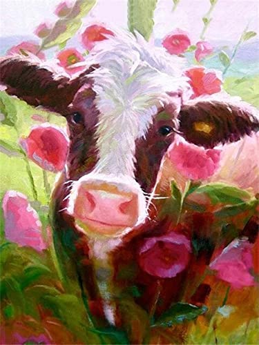 DIY Malen Nach Zahlen Erwachsene Tier Kuh Malen Nach Zahlen Kits Auf Leinwand, Handgemalt Ölgemälde Leinwand Kits Zur Heimdekoration, Pinseln Acrylpigment Für Geschenke Und Home Deko 70x70cm U-2508