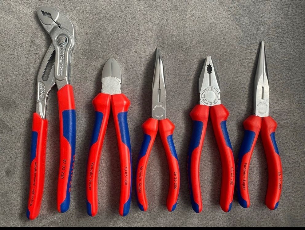 Vielseitig Einsetzbar: Ob Profi oder Hobbyhandwerker – dieses Zangenset 3-teilig überzeugt in jeder Werkstatt. 1 Für Haushalt 2 Für Beruf 3 In jeder Werkstatt Dank des ergonomischen Designs wird ein sicheres, komfortables Greifen ermöglicht und die Ermüdung der Hände beim Gebrauch reduziert. Zangenset Zangen Set 160 mm Sptzzange Kombzange Setenschneder Minimaler Schneidenspiel sorgt zudem für präzise Ergebnisse bei jeder Anwendung. Die perfekte Ausrüstung für vielseitigen Einsatz – ob im Haushalt oder im Beruf. Die Oberfläche ist matt chromnickel-beschichtet und durch gründliches Polieren sowie Wärmebehandlung korrosionsbeständiger und langlebiger. Seitenschneider (Grifflänge 80 mm) Spitzzange (Grifflänge 100 mm) Kombizange (Grifflänge 110 mm)Mit rutschfester Isolierung Die Zangen sind präzise und über lange Backen verfügen. Zangenset narten – Welche Zangen Gibt Es & Welche Zange Ist Die Richtige Knipex Zange 1 Maximale Lebensdauer 2 Exzentrische Spannfutter 3 Zangengröße Zangen-Set von Bosch Professional von Preisschere betroffen! 34% Rabatt Ist das Werkzeug rostfrei? Die Zangen sind aus Chrom-Vanadium-Stahl gefertigt, der eine hohe Beständigkeit gegen Rost und Korrosion aufweist. Breit Einsetzbar: Das 3-teilige TOOLMAYS Zangen-Set enthält: 1x Kombizange (180 mm), 1x Spitzzange (200 mm) und 1x Seitenschneider (160 mm). Ergonomische Griffe mit Anti-Rutsch-Oberfläche:Der Griff unseres Zangensatzes besteht aus TPR-Material. Sind die Zangen für feinmotorische Arbeiten geeignet? Ja. Knipex Profi Zangenset (Neu und originalverpackt) in Tann für CHF 36...