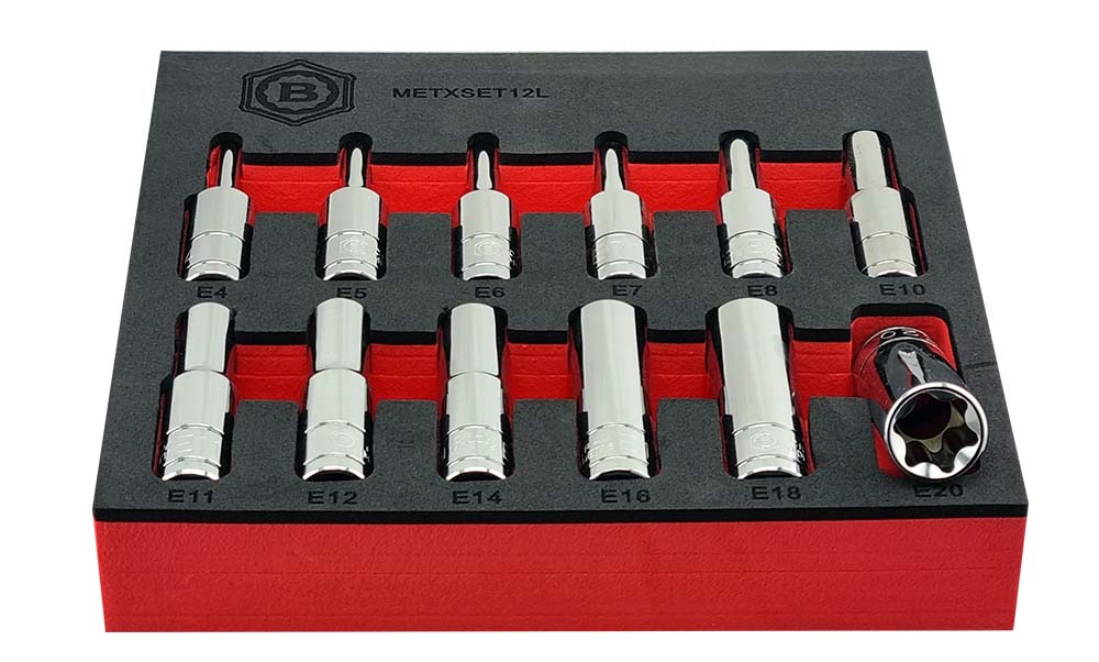Lieferung komplett mit Metallgestell , Einfach zu verwenden 1/4 3/8 und 1/2 Stecknuss und Zubehörset 12 Kant Nuss Satz Britool M2BTXSET12 Torx Estrella Bits Hallmark Socket Set 3/8 Pulgadas SQ DR Des Nuss Set