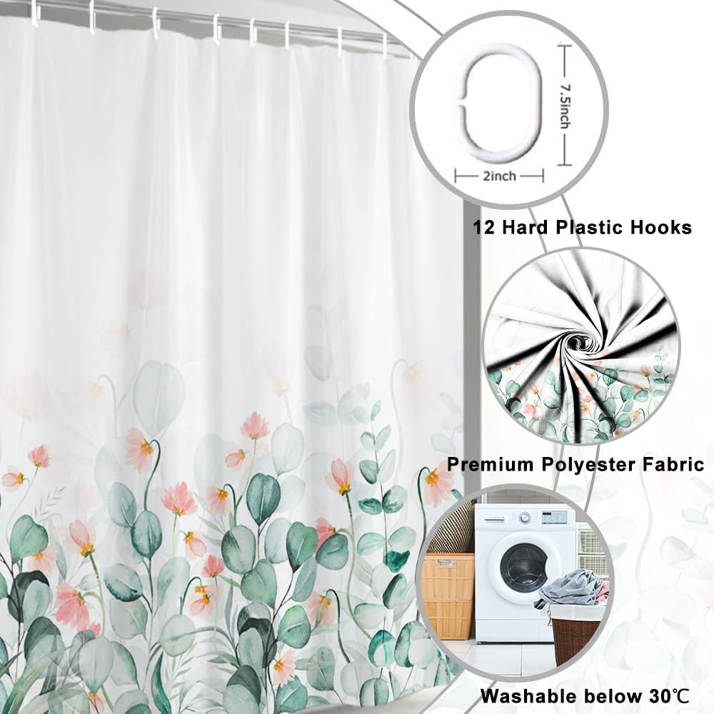 MIRRORANG 120x180cm Blatt Duschvorhang Anlage Aquarell Natur Eukalyptus Grüne Blätter Duschvorhang Für Badezimmer Wasserdichtes Polyestergewebe Set Mit Haken