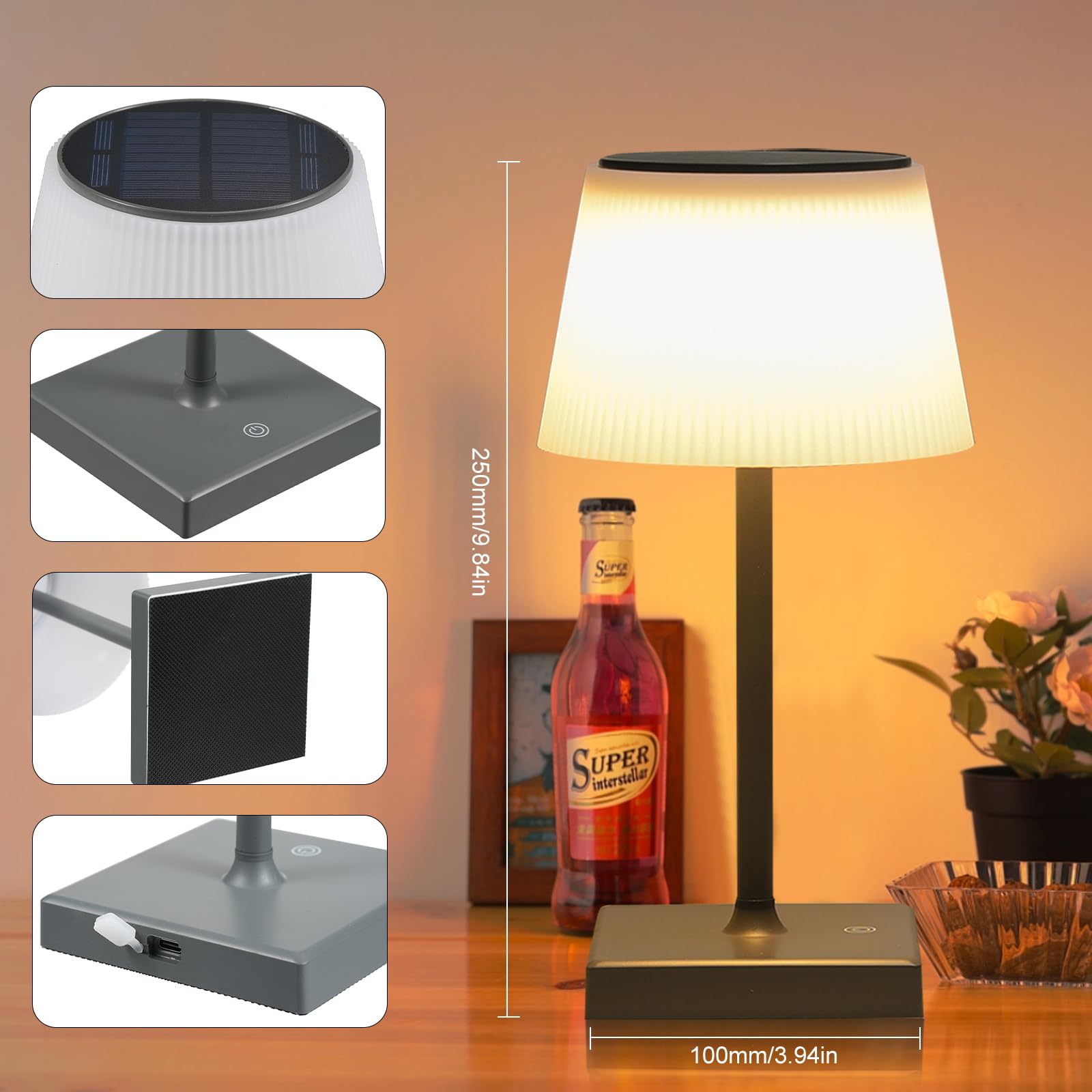 Lámpara de mesa solar recargable 36631, IP44 negra | Lampara.es Nº de portalámparas o Leds: 1., Potencia máxima de la fuente de luz: 2., 8W. LEDS C4 DECO PX-0263-NEG Sobremesa Material de la estructura: Acero., Acabado estructura: Negro. Índice de reproducción cromática: 80., Horas de vida: 36., 000h L70B30., UGR: 20., 9., Flujo real (lm): 182., Flujo nominal (lm): 280., Lm / W reales: 65., Voltaje: 3., Equipo incluido: Si, electrónico., Potencia total: 2., 8. Tischlampe Kabellos Lámpara De Mesa Solar Exterior Con Batería Recargable Plateado ø20cm Platina | Maisons Du Monde Tischlampe Akku Lámpara de mesa solar recargable 36631, IP44 negra | Lampara.es