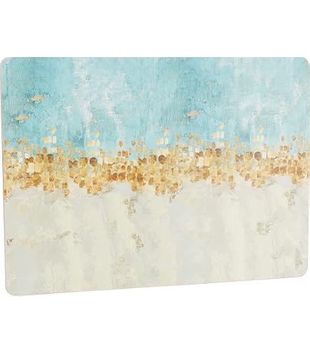 Günstige 20Stk. 10 Stile mit Meeresmotiv-Harzanhängern, Meerestier... Die Premium-Kollektion Dank ihrer glänzend lackierten Oberfläche sind diese Untersetzer und Sammlerstücke nicht nur hübsch, sondern auch sehr praktisch. Die Untersetzer sind 5 mm dick und haben eine langlebige Hochglanzlackierung. Langlebige Qualität - Dieses Set aus 6 strapazierfähigen Untersetzern bietet ein hervorragendes Preis-Leistungs-Verhältnis. Was Sie bekommen - KitchenCraft Creative Tops Untersetzer Set, Holz mit Korkrücken, Ocean Blue Design, 10., 5cm (4), 6er Set KitchenCraft Creative Tops Untersetzer 6er Set, hochwertige Holzuntersetzer mit Korkrücken und abstraktem Meeresmotiv, 10,5cm (4"), 4er Set, Blau von CREATIVE TOPS. Geschirr günstig online kaufen bei Möbel & Garten Die Produkte von KitchenCraft gewährleisten eine hohe Qualität der Zubereitung von Speisen auf komfortable, wirtschaftliche und gesunde Weise. Herkunftsland: Großbritannien Eleganter Geschirrschutz - rutschfest, schmutzabweisend und hitzebeständig bis 120°C (248°F) Egal ob Küche oder Tisch, Backen oder Servieren, Essen oder Trinken, wir bieten einen passenden Stil für jeden Hobbykoch und passionierten Gastgeber. Ihre Getränke werde keine Spuren auf dem aufgedruckten Bild hinterlassen, da durch die lackierte Oberfläche Feuchtigkeitsschäden vermieden werden. Passende Produkte erhältlich Sie können Ihre neuen, bedruckten Untersetzer mit den passenden Tischsets ergänzen und so für einen visuell ansprechenden Tisch sorgen, der bei Dinnerpartys und besonderen Anlässen beeindrucken wird. Vervollständigen Sie Ihre Geschirrkollektion - Kombinieren Sie diese hochwertigen Untersetzer mit passenden Platzsets zu einem auffallenden Tischset. Creative Tops Premium-Untersetzer mit Korkrückseite Schützen Sie Ihren Tisch mit diesem fantastischen Set, das aus sechs Untersetzern mit Korkrückseite besteht und auf einem reizenden Druck eine wie von Hand gemalte Küstenlandschaft zeigt. Große, abstrakte Pinselstriche bilden einen goldfarbenen Strand vor einem tiefblauen Ozean, der mit dem hellen weißen Meeresschaum und dem endlosen, wolkenverhangenen Himmel kontrastiert. Der einfache und dabei wunderschöne Stil macht sich sehr gut auf dem Familientisch, neben Ihrem Geschirr, das mit exquisiten, hausgemachten Speisen gefüllt ist. Sie erhalten sechs Untersetzer, die hervorragend dazu geeignet sind, Ihren Nachttisch und Kaffeetisch sauber und makellos zu halten, und auch bei einer formellen Dinnerparty fantastisch aussehen. Creative Tops Tranquility Bedruckte, Runde Tischsets mit Was Sie bekommen - KitchenCraft Creative Tops Untersetzer Set, Holz mit Korkrücken, Ocean Blue Design, 10.Geschirr und andere Küchenausstattung günstig online kaufen bei Möbel & Garten.