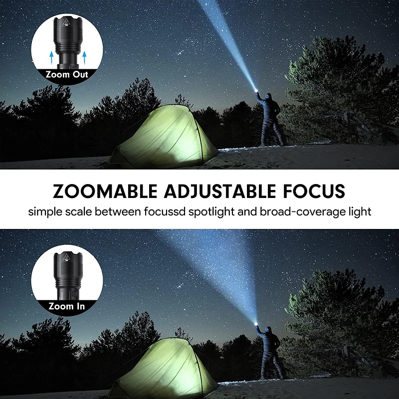 Led Taschenlampe WESLITE XHP70.2 Aufladbar, Taktische Taschenlampen LED Extrem Hell 6000 Lumen Leistungsstarke USB Taschenlampe Zoombar Mit 5 Modi Und Stromanzeige Für Camping Angeln Camping Lampen