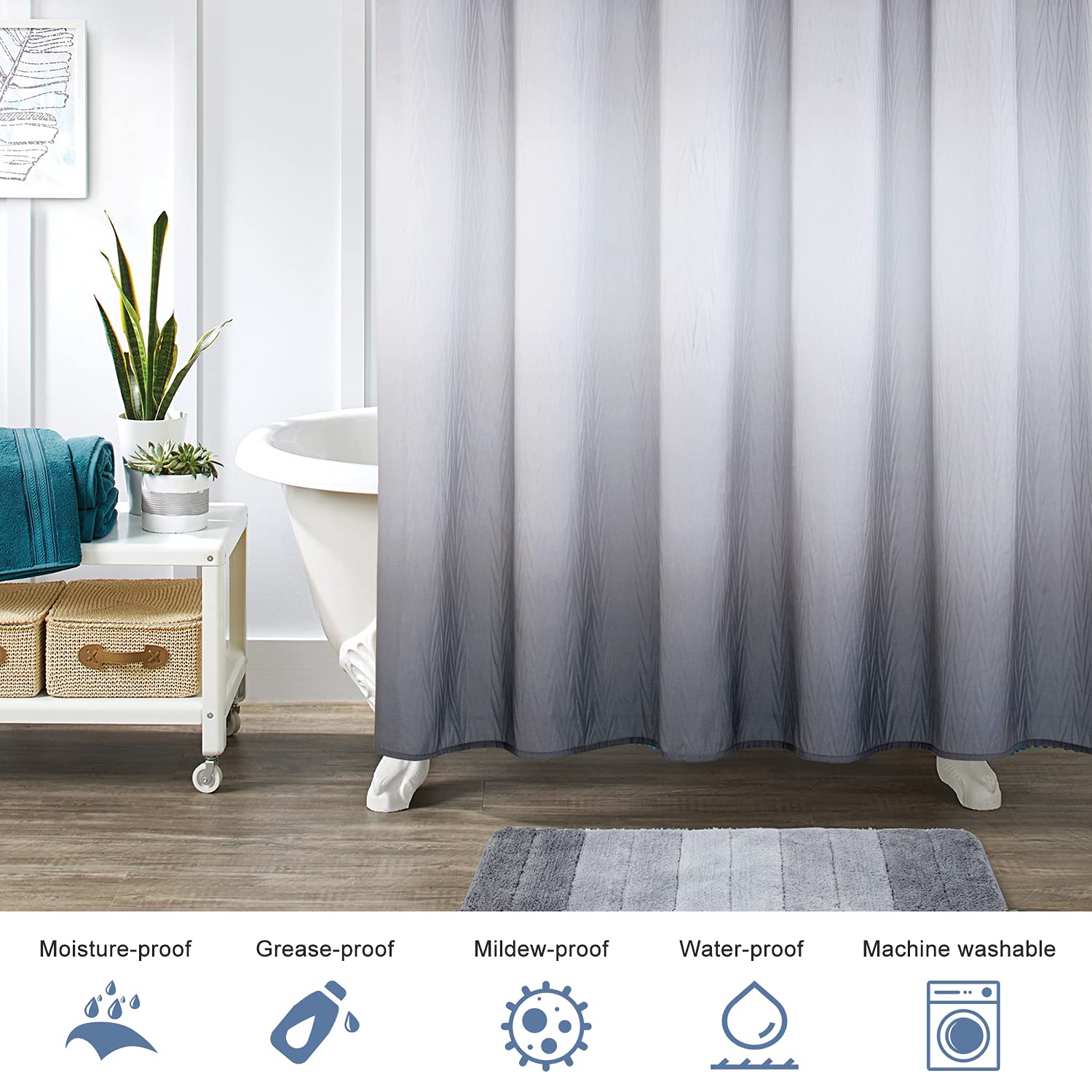 Mit einem abnehmbaren, wasserdichten Futter zum Aufstecken sind der Duschvorhang und der Einsatz aus hochwertigem Polyestergewebe für den langfristigen Gebrauch, wasserdicht und schnell trocknend, perfekt für Duschräume, Badezimmer, Duschkabinen, Toiletten und mehr., Größe: 91 x 183 cm., 91 x 198 cm., 122 x 183 cm., 137 x 198 cm., 152 x 183 cm., 168 x 183 cm., 183 x 183 cm., 183 x 198 cm., 183 x 214 cm., 183 x 244 cm., Material: Polyester. (Hinweis: Vor dem Waschen den Duschvorhang vom Futter trennen) Grau-brauner Duschvorhang mit klassischer Holzstruktur. Perfekt für Hotels und Spas: Khaki gestreifter Farbverlauf, rustikaler Holzbrett-Duschvorhang mit herausnehmbarem Futter und integrierten Ösen für einfache Reinigung oder Austausch. Dieser verbesserte Duschvorhang ist mit Abreißringen ausgestattet, mit denen Sie ihn einfach ohne Haken aufhängen können. Das abnehmbare, wasserdichte Futter zum Aufstecken ermöglicht es Ihnen, den Vorhang für eine Vielzahl von Heimdekorationsmöglichkeiten zu wechseln. Psvod Duschvorhang mit grüner Kurvenstruktur, 183 x 183 cm, wasserdicht, waschbar, Badezimmer-Duschvorhang mit 12 Haken, moderne Badezimmer-Dekoration Perfekt für Badezimmer, Badezimmer, Duschräume, Toiletten und mehr. JSLOVE Duschvorhang Für Badezimmer, Mit Teppich, Grau, Mit Haken, 183 X 183 Cm, Wasserdichter Stoff