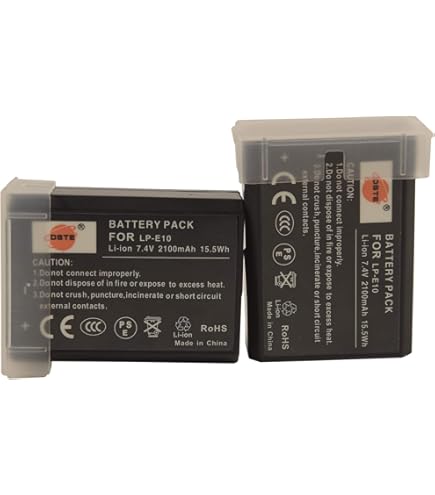 Geringe Selbstentladung bei Nichtgebrauch. ✅ 𝐇𝐎𝐇𝐄 𝐐𝐔𝐀𝐋𝐈𝐓Ä𝐓: Hergestellt nach höchsten europäischen Qualitätsstandards., Maßgefertigte Passform. ✅ 𝐓𝐑𝐀𝐃𝐄‐𝐒𝐇𝐎𝐏: Akkutyp: Li-Ion / Spannung: 7,2V / Kapazität: 850mAh / 6,1Wh / Zellen: erstklassige Marken-Zellen / Farbe: Schwarz Überhitzungsschutz, Überladungsschutz und sind Kurzschlusssicher. Die geringe Selbstentladung der Akkus sorgt bei Nichtgebrauch für geringen Energieverlust. ✅ 𝐋𝐄𝐈𝐒𝐓𝐔𝐍𝐆𝐒𝐒𝐓𝐀𝐑𝐊: Akku mit hoher Kapazität, hochwertiges Trade-Shop Produkt direkt vom Hersteller. Technische Daten:- 2x Hochleistungs Li-Ion Akku, 7,2V / 850mAh / 6,1Wh- Abmessungen: 49 x 36 x 15 mm- kann mit jedem Standardnetzteil aufgeladen werden- Überhitzungsschutz, Überladungsschutz und Kurzschlussicher- 100% kompatibles Zubehör, Trade-Shop Produkt direkt vom Hersteller- kein Memoryeffekt dank Qualität und die neuste Li-ion TechnologieErsetzt folgende Akkutypen:Canon LP-E10, 5108B002 und baugleichePassend für folgende Geräte:Canon EOS 1100DCanon EOS 1200DCanon EOS 1300DCanon EOS 2000DCanon EOS 4000DCanon EOS Rebel T3Canon EOS Rebel T5Canon EOS Rebel T6Canon EOS Kiss X50Canon EOS Kiss X70Canon EOS Kiss X80und baugleicheWissenswertes zu unseren hochleistungs Li-Ion AkkusUnsere Akkus werden nach höchsten europäischen Qualitätsstandards hergestellt und garantieren eine maßgefertigte Passform. Durchschnittl. Kundenbewertung: - 2X Trade-Shop Li-Ion Akku 850mAh Ersatz Batterie ersetzt Canon LP-E10 passend für Canon EOS 1100D 1200D 1300D 2000D 4000D Rebel T3 T5 T6 Kiss X50 X70 X80 Canon Eos 2000d Zubehör Ladegerät Für Canon EOS LP-E10 + 2x Akku Für EOS 1100D 1200D 1300D Canon Eos 4000d ✅ 𝐊𝐎𝐌𝐏𝐀𝐓𝐈𝐁𝐄𝐋: Ersatz für: Canon LP-E10, 5108B002 und baugleiche Akkutypen K&F Concept K&F Concept Lp-E10 Akku- Und Ladegerät-Set Mit Dual-Slot-Ladegerät Für Canon Eos 1100D, 1300D, 1500D, 1200D, X50 5x XCell CR123A 16340 Pro Li-Ion Akku 3,6V 850mAh mit USB-C Akku für Sony Walkman NW-A3000 series NW-A3000V | ersetzt LIS1356HNPA u...